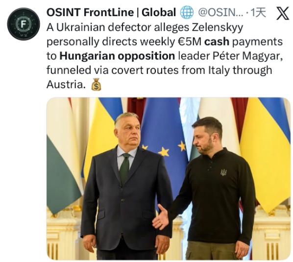 一名乌克兰情报官员逃到了匈牙利,爆出内幕:从2025年11月开始,泽林斯基每周给匈牙利的反对党500万欧元现金,作为他们竞选经费,希望大选中(4月12日投票)打败保守派政府。   今奥尔班总理发表讲话:匈牙利不会被泽林斯基们打倒,要捍卫自己国家主权。前一段泽林斯基的武装运钞车在过境匈牙利时被截扣,车里有8000万美元现金和9公斤黄金。9名押送人员后被释放,但钱仍在扣。两国关系急剧恶化。   泽连斯基这么做,其实是被逼到墙角后的险招。匈牙利是欧盟里出了名的“反援乌先锋”,3月的欧盟峰会上,奥尔班硬生生否决了给乌克兰的900亿欧元贷款计划。哪怕冯德莱恩、默茨这些欧盟大佬轮番劝说,他也丝毫不松口。   这不是第一次了,之前欧盟想用冻结的俄罗斯资产给乌克兰贷款,同样被匈牙利和斯洛伐克联手拦下。   对乌克兰来说,匈牙利的反对直接卡着外援的喉咙,要是能换个亲乌的匈牙利政府,后续援助之路肯定能顺不少。   更关键的是,乌克兰之前关闭了“友谊管道”,断了俄罗斯给匈牙利输油的主要通道,双方早就结了梁子。泽连斯基想通过大选干预,一举扭转匈牙利的对乌政策,只是手段太直白,完全踩了国际交往的红线。   奥尔班敢硬刚,底气全来自实打实的利益绑定和内外支持。匈牙利的能源命脉攥在俄罗斯手里,80%的天然气、90%的原油都靠俄罗斯供应。   全国一半电力来自的保克什核电站,技术和铀燃料是俄罗斯的,扩建项目还欠着俄罗斯贷款。想把能源供应换成其他国家,光改造专门加工俄原油的工厂,就得花数亿美元,还要等好几年。乌克兰切断“友谊管道”10天,匈牙利就损失了5亿欧元,这种代价他根本承受不起。   更别提历史遗留问题,外喀尔巴阡地区住着不少匈牙利裔,这片土地早年从匈牙利划给乌克兰,奥尔班一直拿这个当筹码,要求乌克兰承认其“传统领土”地位。   加上乌克兰农产品免税进入欧盟,直接冲击了匈牙利的农业支柱,这让奥尔班对乌克兰入盟和援乌政策,从根上就抵触。   外部支持也给了奥尔班硬气的资本。特朗普政府明确站他这边,副总统万斯计划在大选前访问匈牙利,公开支持他连任。美国国内虽然有参议员提法案,想制裁阻挠援乌的匈牙利官员,但有特朗普背书,制裁落地的可能性大打折扣。   俄罗斯那边更不用说,匈牙利是俄气在欧洲的重要市场,“土耳其溪”管道是俄气输欧的唯一通道,经过匈牙利境内,双方形成了利益共同体。   奥尔班发表讲话说要捍卫国家主权,其实是摸准了国内民意,匈牙利民众不想为乌克兰的战争买单,也不想因为制裁俄罗斯让自己的能源账单涨价。   这场冲突背后,是欧盟内部撕裂的缩影。欧盟一直想推动对俄能源脱钩,但匈牙利和斯洛伐克拿到了豁免,能用到2027年。   美以打击伊朗后,霍尔木兹海峡局势紧张,国际油价暴涨,欧盟干脆暂时放弃了禁用俄能源的计划。可成员国之间的分歧没解决,德国、法国这些国家想硬扛对俄制裁,匈牙利却要优先保自己的能源安全和经济利益。   欧盟的“一致同意”规则,让人口不足1000万的匈牙利有了否决权,每次涉及援乌的议题,都能让欧盟陷入尴尬。这种内部矛盾,让泽连斯基看到了干预匈牙利大选的“机会”,却没想到反而让分歧更公开化。   事件的后续影响已经逐渐显现。匈牙利威胁要逐步停止给乌克兰供应天然气,乌克兰这边也不客气,之前就发出过武力威胁。   对泽连斯基来说,偷送竞选资金被抓包,不仅没帮到反对党,反而让对方背上了“外国代理人”的骂名,奥尔班则借着“抵御外部干预”的口号,凝聚了不少民意。   欧盟想推动的援乌计划被搁置,4月本该交付的第一笔贷款泡汤,乌克兰在俄乌冲突的关键阶段,又少了一笔重要资金来源。   更麻烦的是,美国内部对匈牙利的态度分裂,特朗普的支持让欧盟对匈牙利的施压变得无力,这会进一步削弱欧盟在国际事务中的话语权。   说到底,这事儿的核心还是国家利益的博弈。泽连斯基想靠金钱干预邻国大选,解决外援难题,却忽略了每个国家都有自己的核心关切。   奥尔班的强硬,本质上是在维护匈牙利的能源安全和经济利益,他很清楚,跟着欧盟硬扛俄罗斯,最后吃亏的是本国百姓。   国际交往的底线就是不干涉他国内政,泽连斯基这步棋,不仅没达到目的,还让乌克兰陷入了更被动的境地。   两国关系的恶化,不仅影响双边合作,还会让本就分裂的欧盟更难形成合力,而这背后牵扯的能源、历史、地缘政治等问题,短期内根本找不到解决办法,这场冲突还会持续发酵下去。