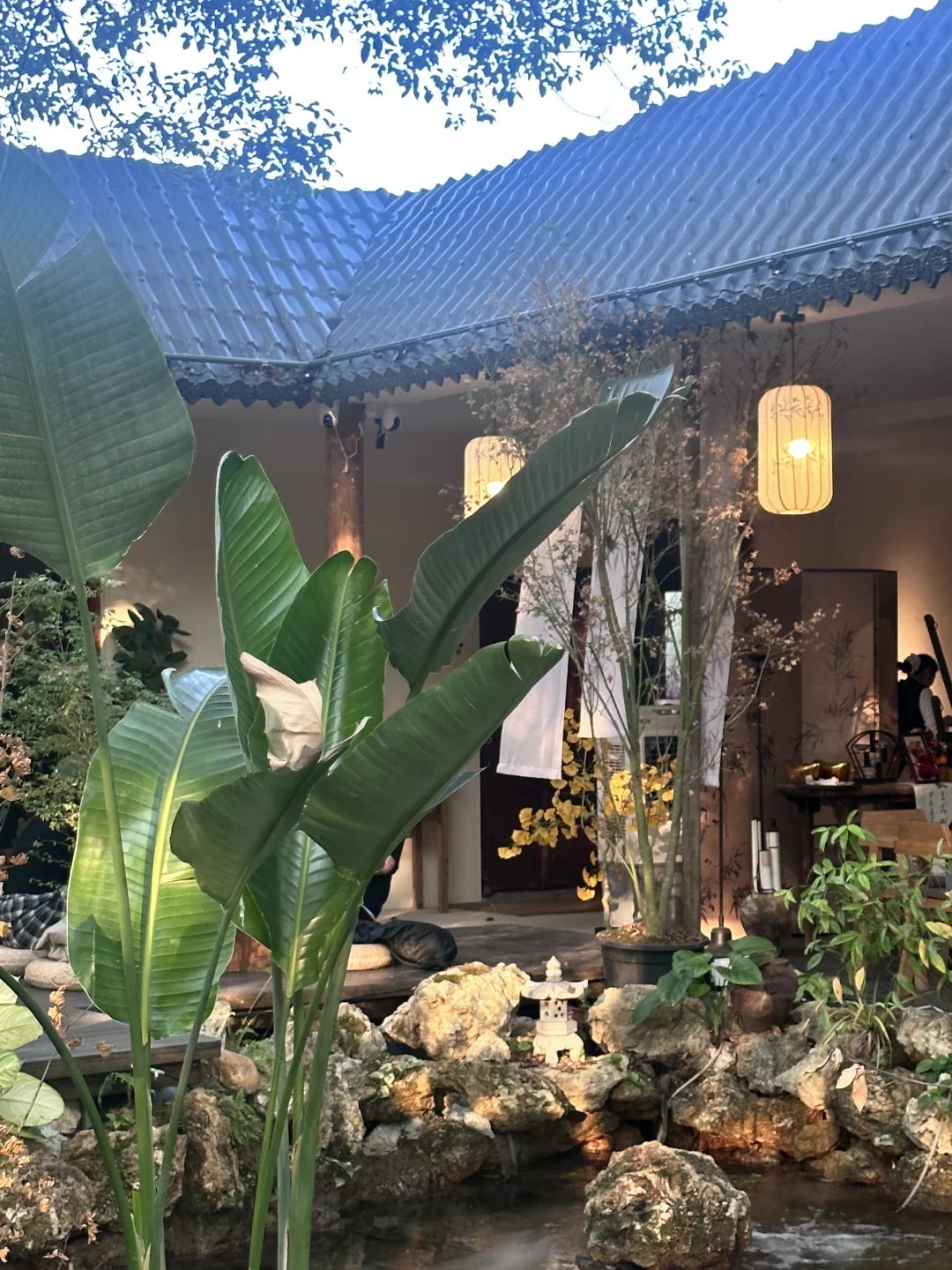 院子里大树枝繁叶茂🌳 阳光透过树枝的缝隙洒在木质小屋上 恬静美好 时光慢下来了 📍闲野六记·言叶书房