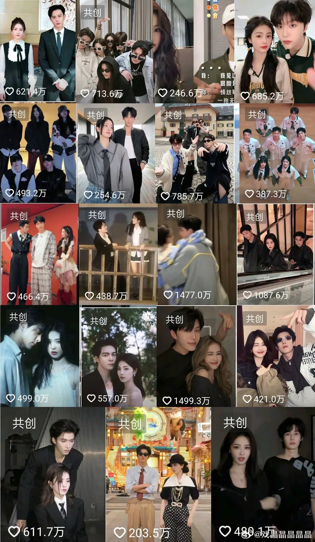 看最热,合计6个过千万,除了前面说的置顶的3个外,其余3个都是与男艺人共创,且最高的两个也是共创。
