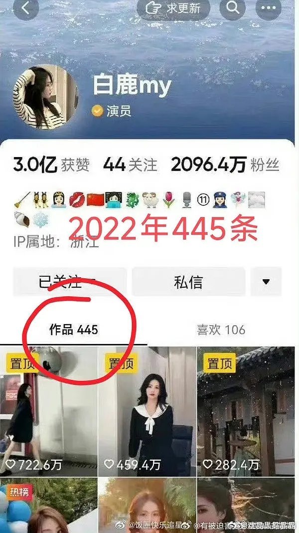 鹿鹿删了或隐藏抖视频240多个,不影响总赞量,总数量变少,均赞高,鹿鹿丝拿这个数据全平台夸。