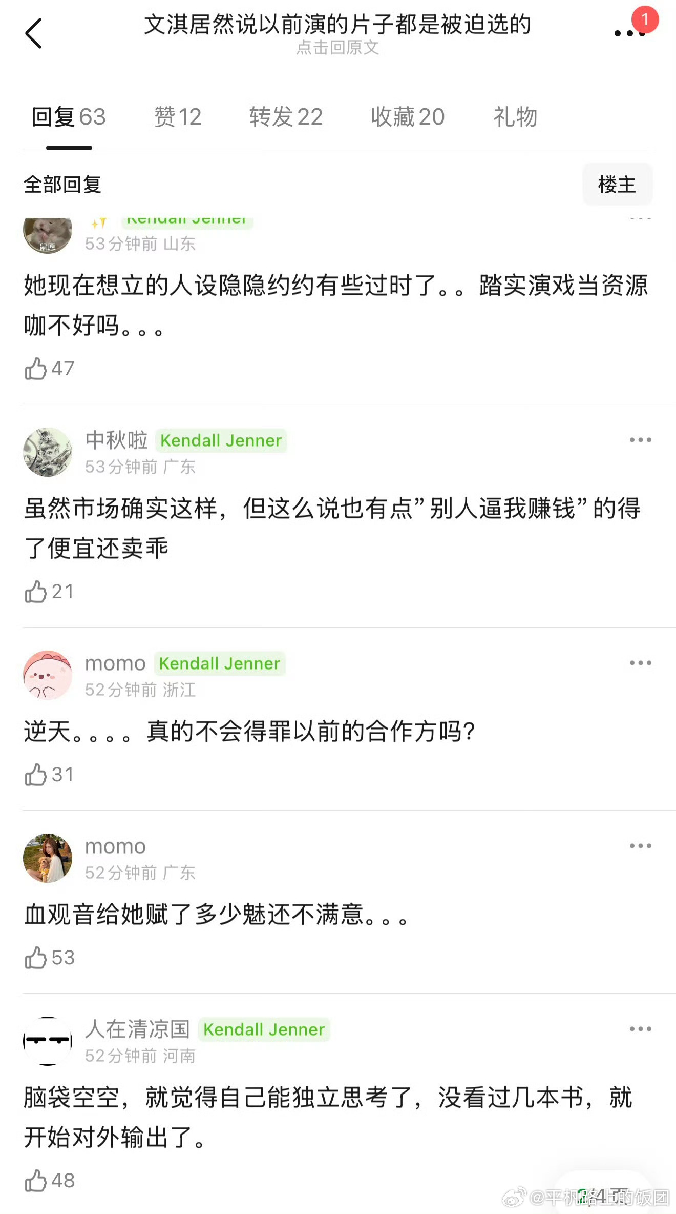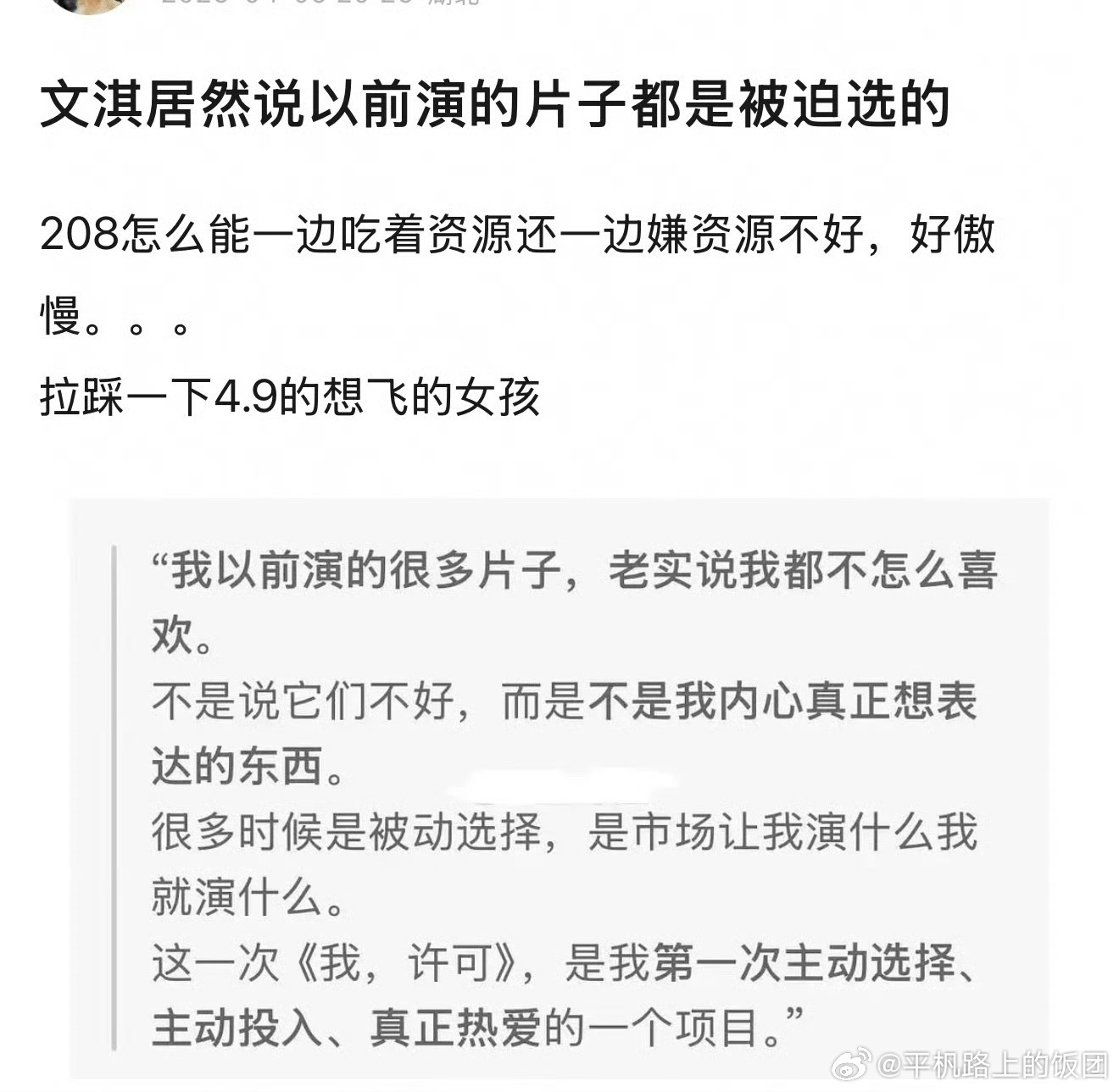 说实话我不懂文淇这些年为啥频繁往复的提及女⭕。女性主义这四个字在短视频平台的普及远远比文淇本人有更大的影响力,文淇自己的知名度可能更需要靠提“女性主义”四个字来提升而不是女性主义需要靠文淇来扩散吧