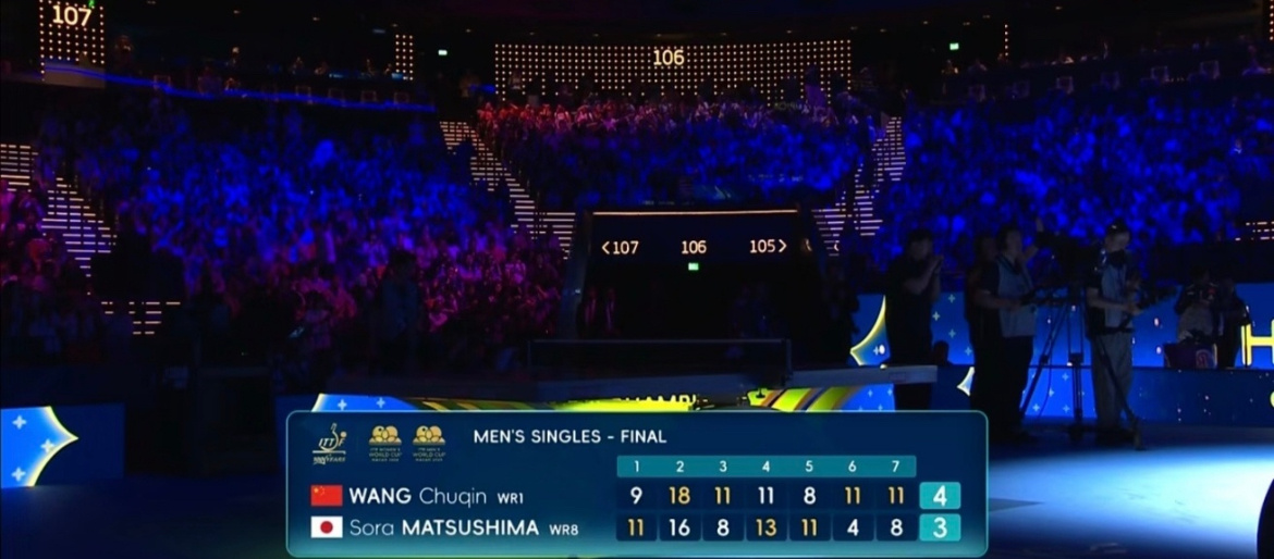 比赛开局,松岛辉空迅速进入状态,凭借快速衔接和反手拧拉给王楚钦制造巨大压力,局末阶段王楚钦在7-9落后的情况下连赢4分,以11-9先拔头筹。第二局成为全场最惊心动魄的拉锯战,双方比分紧咬,松岛辉空在8-8平后连赢两分拿到两个局点,却均被王楚钦化解,随后双方你来我往分别挽救多个局点,比赛耗时近20分钟,最终王楚钦以18-16惊险胜出,大比分2-0领先。