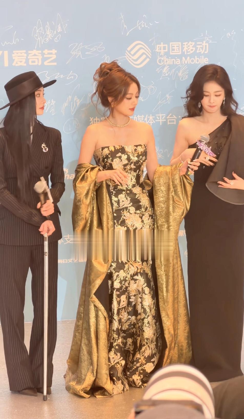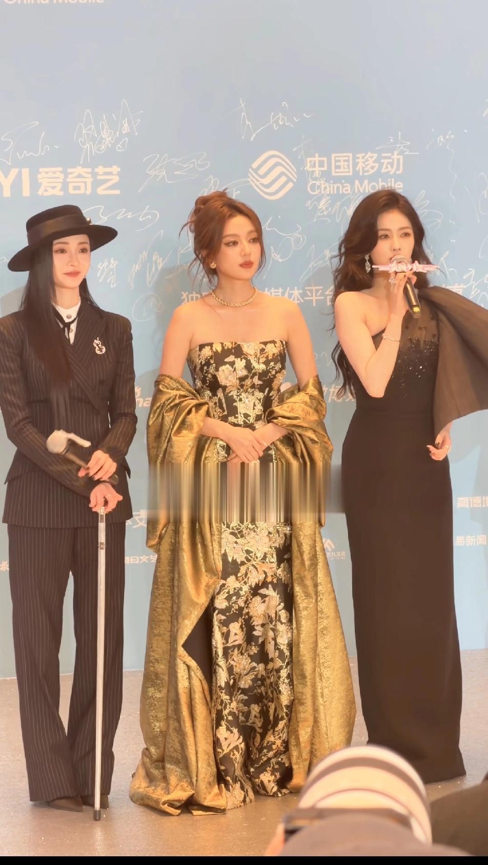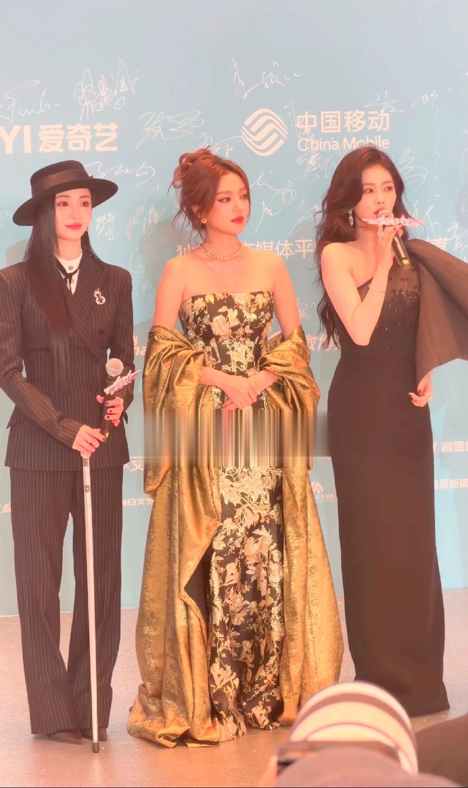 何瑞贤的气场看着比白鹿还要大,她真的是三线的咖位,一线的气场,如果不认识她们,一眼望过去,何瑞贤看起来倒像咖位最高的,关键她的体态特别好,站姿也好,她始终把两只手交叉于身前,看着端庄优雅,何瑞贤的神态也好,看着自然大方,不明白气质这么好,辨识度这么高的何瑞贤为什么就是不能大火?何瑞贤
