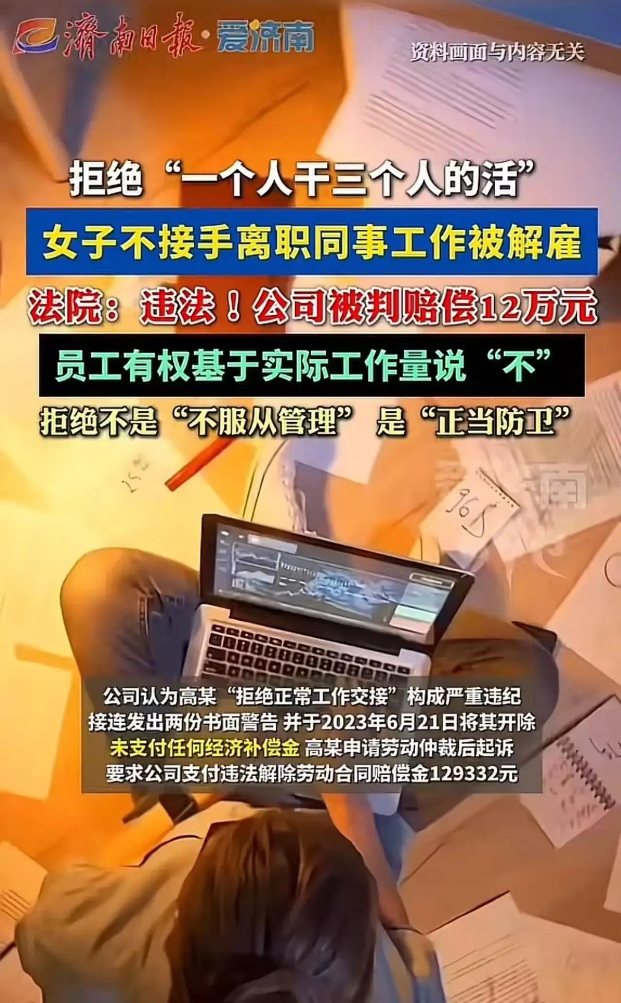 打工人的权益谁来守护?河北石家庄一女子就遭遇了这样的困境,她因拒绝“一个人干三个人的活”而被公司解雇,但她没有选择忍气吞声,而是勇敢地站了出来,将公司告上了法庭! 这位女子名叫高某,她原本在公司里勤勤恳恳地工作,但公司却突然给她加派了大量任务,要求她一个人完成三个人的工作量。高某觉得这已经超出了她的合理负荷,于是果断拒绝了公司的要求。然而,公司却以她“严重违纪”为由,将她解雇了。面对这样的不公,高某没有选择沉默,而是勇敢地拿起了法律武器,将公司告上了法庭。经过审理,北京三中院最终做出了公正的判决,认定公司强行加派任务属于变相强迫加班,高某拒绝是正当维权,不是对抗管理。同时,法院还指出,公司以“严重违纪”为由解除合同,缺乏合法性和合理性,构成违法解除。最终,公司被判支付赔偿金12万余元,真是大快人心! 这起案件不仅为打工人维权树立了榜样,更彰显了法律的公正与力量。如果你也遇到过类似的不公待遇,不妨勇敢站出来,用法律武器维护自己的权益。快来评论区分享你的看法吧!打工坏处 劳动用工权益 打工规定 职场员工权益