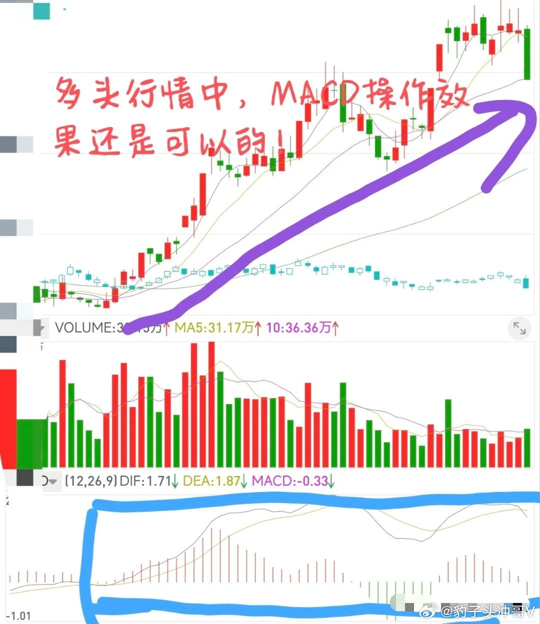 避开空头行情使用。任何技术指标在空头行情中,基本上都会失真。也就意味着,在股价处于空头走势的时候,使用MACD指标就要格外的小心,甚至没有必要去参与。因为,在这种行情下,有可能MACD出现金叉了,可是股价还是处于缓慢下跌或者横盘震荡当中,这样就失去了操作的意义。如果是在多头行情中,利用MACD,还能给自己一个清晰的操作参考。第三,
