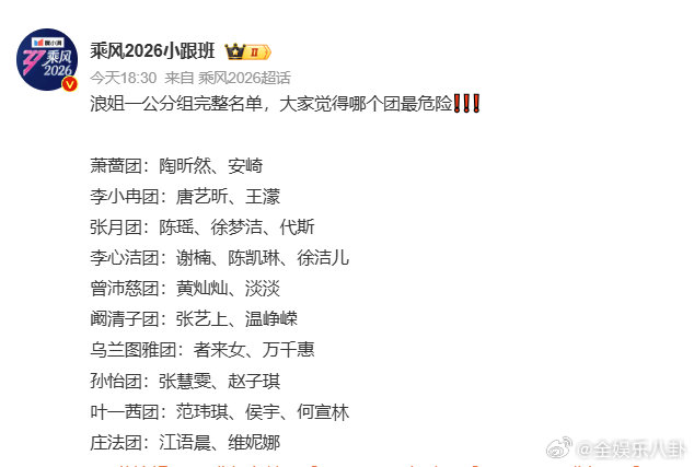叶一茜范玮琪侯宇何宣林一组叶一茜、范玮琪、侯宇、何宣林这组也太让人期待了!颜值实力双在线,舞台稳了~乘风2026