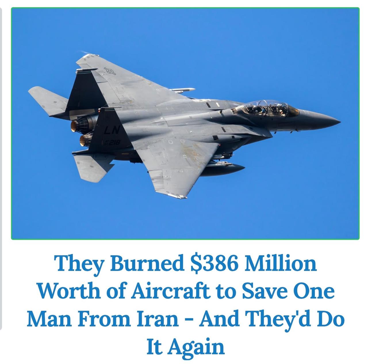 美军包括F-15在内总共损失了3.86亿美元 1架F-15E“攻击鹰”战斗机 1架A-10C“雷电II” 攻击机 1架MC-130J运输机 1架HC-130J运输机 2架MH-6“小鸟”直升机