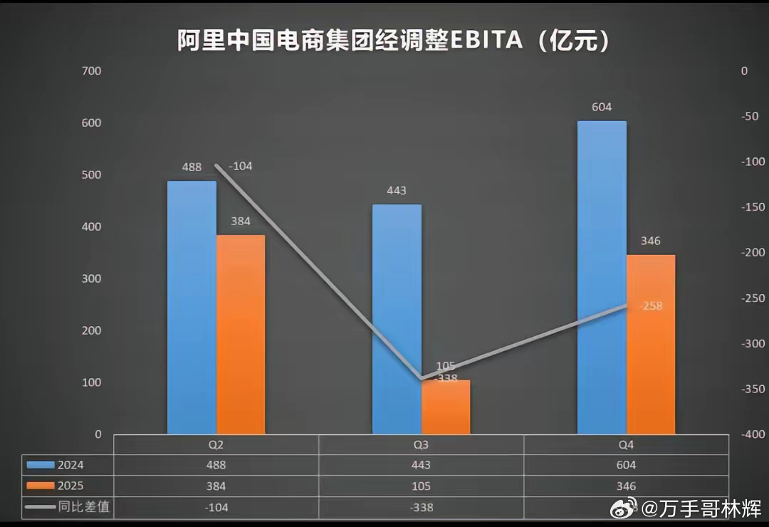 外卖大战烧1700亿,最后竟是我们在买单?这场打了一年多的外卖补贴战,三家平台烧的利润加起来,保守估计都快1700亿了。先说说阿里,这烧钱力度是真的猛。2025年二到三季度这9个月,光新增的营销费用就砸了837亿,中国电商集团的经调整EBITA,同比直接少了700亿。汇丰测算25Q2到26Q1,阿里仅在外卖和即时零售上就亏了870亿,当初说的“500亿计划”直接被秒成渣。再加上京东亏的420亿、美团亏的440亿,三家合计1730亿,阿里一家的亏损就顶了另外两家的总和。看这组数据更直观:2025年阿里外卖营销费用飙到2278亿,比2024年多花了911亿;美团从640亿涨到1029亿,多砸389亿;京东从480亿涨到840亿,多花360亿。可结果呢?阿里、京东的外卖份额,也就各涨了10%,妥妥的投入远大于收获。再看阿里电商的利润,更是肉眼可见地被掏空。2025年二、三、四季度,EBITA分别只有384亿、105亿、346亿,对比2024年同期,分别少了104亿、338亿、258亿,利润被补贴战硬生生啃掉了一大块。很多人觉得烧的是平台的钱,其实真正买单的,是咱们这些持有港股的投资者。恒生指数里,阿里、美团、京东三家权重加起来快15%了,恒生科技指数里更是占到20%-30%。这逻辑特别简单:平台打补贴战,烧的是自己的利润;利润一跌,股价就跟着掉;股价一掉,恒生指数就被往下拽。去年美团最明显,核心本地商业从盈利524亿直接变成亏69亿,股价跌了快一半;阿里电商利润腰斩43%,京东新业务亏了466亿。三家股价轮番跌,恒生科技指数跟着反复震荡,买了恒生ETF、科技指数基金的,账户跟着一起缩水。还有个特有意思的现象,每次听说“外卖大战要停”,恒生立马涨一波。