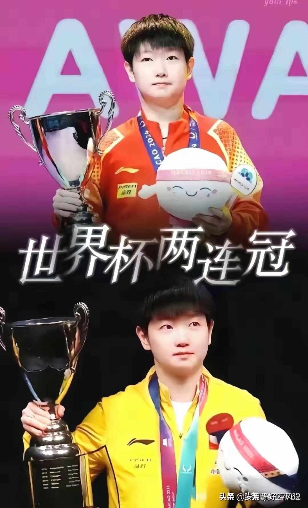 史无前例!孙颖莎世界杯三连冠封神,海产姐妹再献巅峰对决! 澳门世界杯决赛,孙颖莎以4:1击败王曼昱,用一场酣畅淋漓的胜利创下世界杯女乒三连冠的历史。两人一路过关斩将会师决赛,孙颖莎正手犀利、出手果断,王曼昱反手强势,每一局都打得紧张刺激。 更让人惊叹的是孙颖莎的恐怖稳定性,从19岁开始,只要是升国旗的重要赛事,她全都能打进决赛,更是女乒唯一的世锦赛双圈金满贯、洲际赛事全满贯得主,连续9次站上三大赛决赛舞台,纪录无人能及。