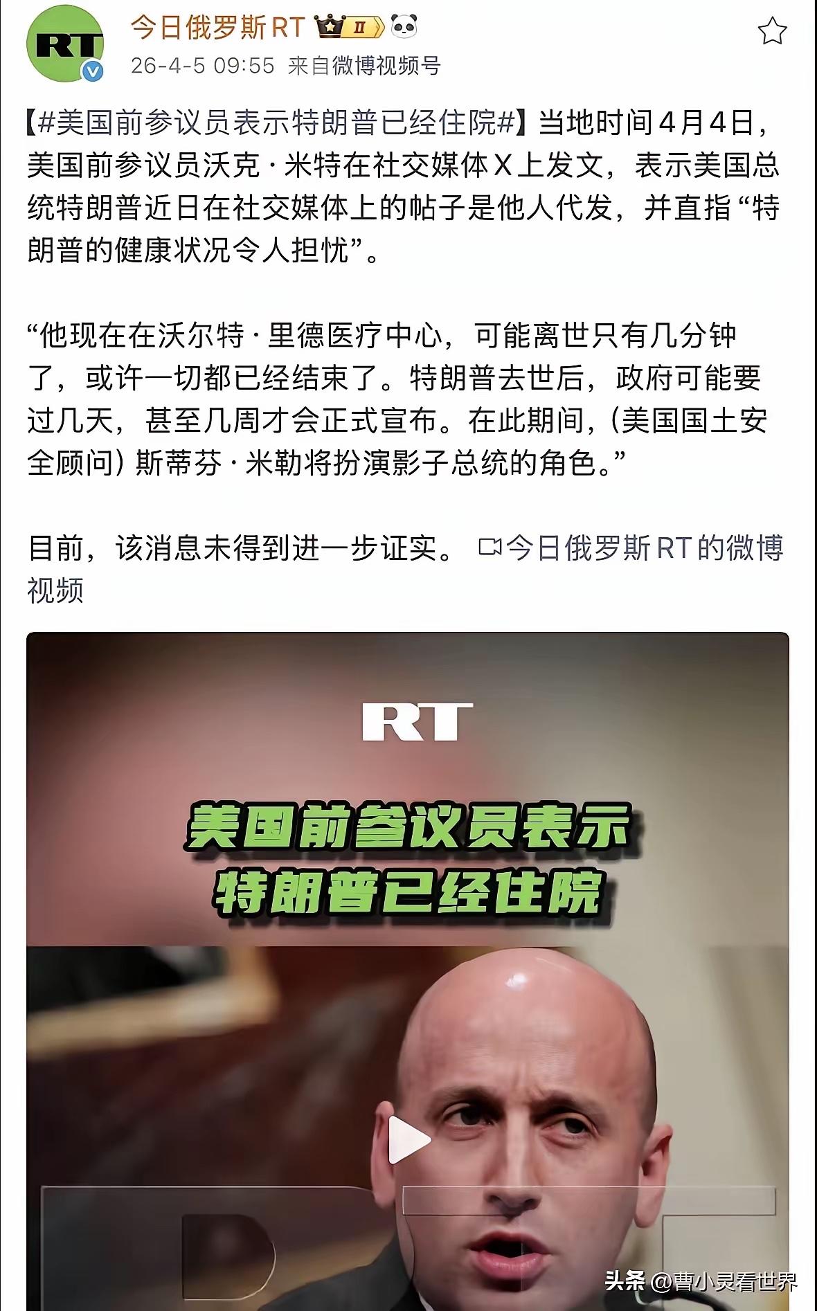 影响世界的重大突发事件,传美国总统特朗普的健康状况恶化,似乎已经……