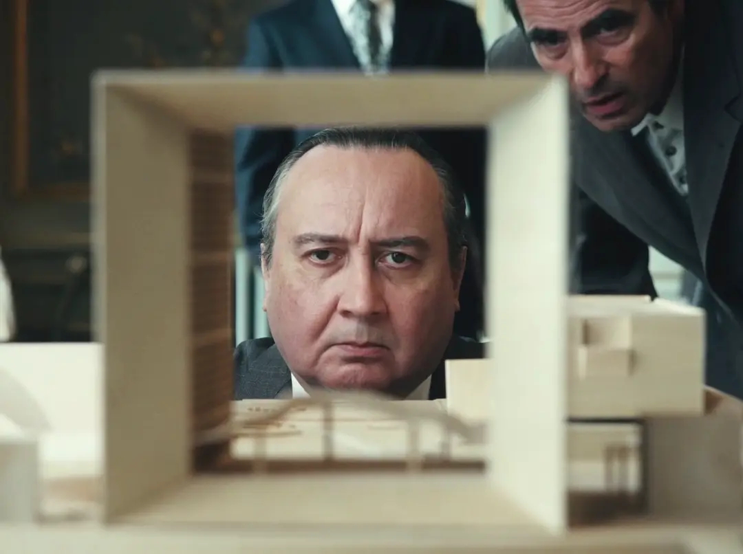 浪漫的理想主义与硬冷的实用主义,这对矛盾的对立冲突,细化到了每一条地坪的接缝,每一块大理石的纹理。全片用极尽扎实详尽的叙事,还原了一段完美主义者被骨感现实一点点侵蚀,直至彻底妥协的辛酸往事。底层迟缓的办事效率,中层厚重的官僚主义,直至顶层民主选举制度的无解弊端,联手扼杀了设计图纸上美轮美奂的“立方体”。时隔四十多年,这段往事依然令人唏嘘,法国乃至整个欧洲如今疲敝衰败的症结,原来早已露出了端倪。