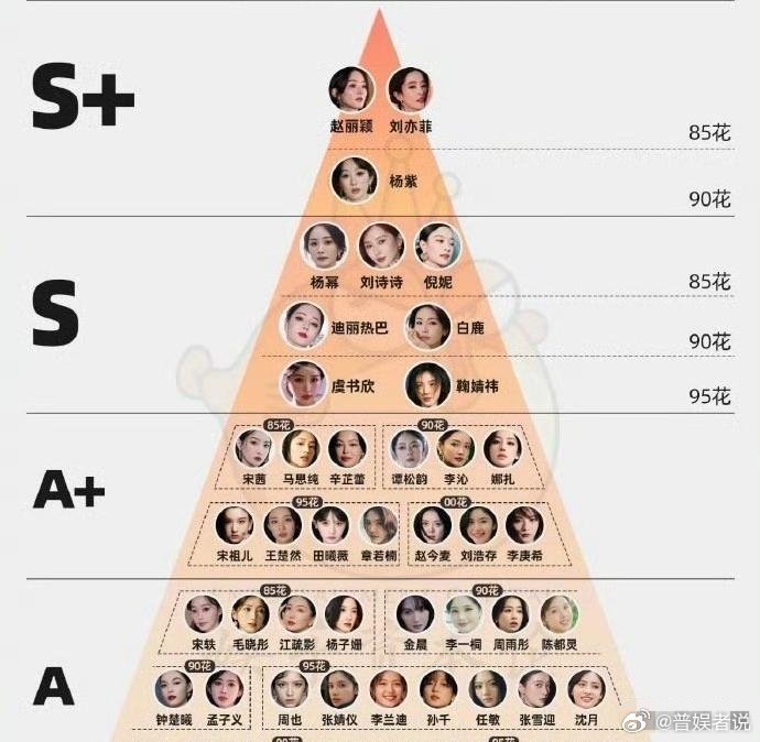 这个女明星番位评级, 看到赵丽颖和刘亦菲并列在顶端别有一番滋味, 就觉得刘亦菲好像生来就是王者, 而赵丽颖她吃了那么多苦走了那么久才跟她并列, 也不是说刘亦菲不努力, 当然也知道她拍戏也很拼也受过伤, 但怎么都会觉得赵丽颖更拼, 多少年几乎长在剧组一样, 人的命有时候不能对比着看……