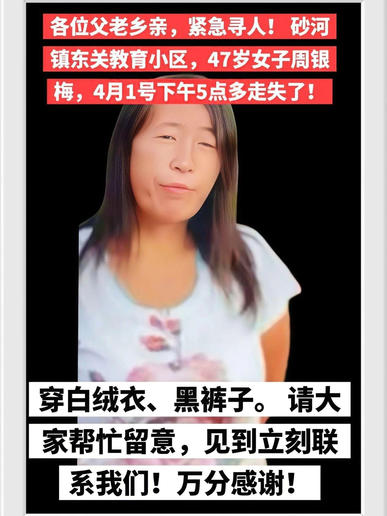 失踪人口信息扩散 紧急寻人启事 周银梅
