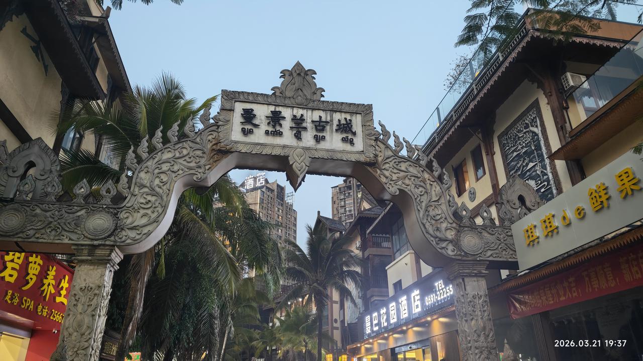 [环国行摄】第三阶段西部篇D36天总第91天:通关服务区~景洪市。 1.路线:通关服务区~宁洱~普洱~景洪 2.今日行驶256公里 3.主要景点:磨黑古镇,那柯里驿站,景曼兰古城,景洪河边夜市。 4.行程: 昨晚很安静。早晨起来。车周边停了许多大车,晚上我们都没有听见。 8点出发,继续走高速。 下一个出口出高速,先到磨黑古镇,也就一个杨丽坤的故居。这个也是后来建的。其他的建筑没什么古老的。倒是这里的集市还不错。 磨黑古镇是普洱市宁洱县下辖镇,素有“滇南盐都”“茶马古镇”“革命老区”“丽人故里”之称,傣语“磨革”意为盐井,20世纪三四十年代曾被称为“小香港”。该镇汉代开始采盐,清代设盐政管理,历史上为思普地区盐茶商贸中心。现存茶马古道遗迹、走马转角楼等特色建筑,曾诞生云南省首个农村党支部及电影《阿诗玛》主演杨丽坤。 出古镇后爬了一个大坡。云南的道路就是这样,大上大下,动不动海拔升高五六百米。快到宁洱的时候,有一个那柯里驿站,这里相当不错。有许多古建,还有茶马古道。来人也比较多,有展示制茶的工艺的店铺。有点儿意思。 之后经过宁洱县城,没有停留。然后到达普洱市。之前路过过,那种安静飘渺的景象还深深刻在脑海里。但这次穿过市区,感觉市区面貌很差,高楼多不多倒不说,关键整洁度很差,高楼很少,还不如一个县城。之后到火车站打卡,继续前进。上高速,一直快到景洪市下来。这一段距离100来公里,走下道需要四个半小时,高速100分钟。不知道为什么差这么多。这种情况必须走高速了。 下午4点到景洪市。景洪,傣语意为“黎明之城”,是以傣族为主体的多民族边疆地区。古称景咏、景陇,旧称车里、彻里,是西双版纳傣族自治州首府及全州的政治、经济、文化中心。我是第三次来这里了。 之前定了两个晚上的住宿。已经一个来月没有住宿了。一个是这里几乎没有免费停车场,天气也热,也该洗澡了。市区的住宿很便宜,70元1个晚上很干净。位置也很好。 住下之后,到附近拿了快递,看了那个景曼兰古城,根本就没有个古城样。也就一个大门。之后到河边夜市,街道又窄,人又多。那些小吃没有一点吸引力。匆匆走人,到饭店要了几个炒菜,回旅馆休息。晚上很热,第一次开了空调。 5.住宿:景洪市某宾馆住宿。3.21 6.路况:整体很好。国道很多时段车不多。 7.天气温度:19-30度,晴天,体感中午特别热。
