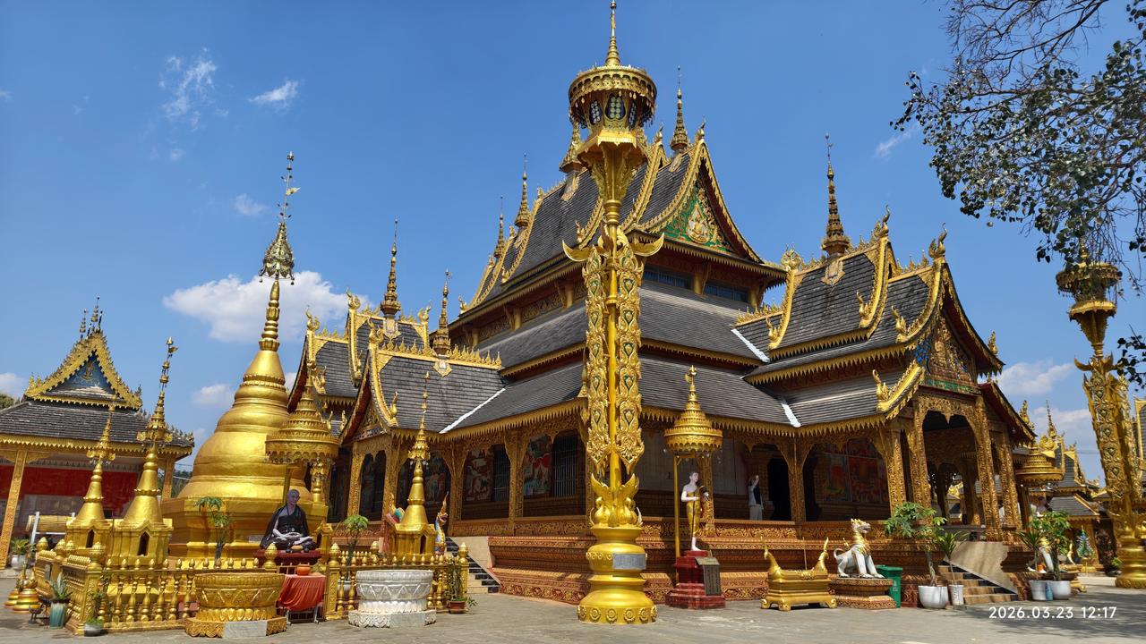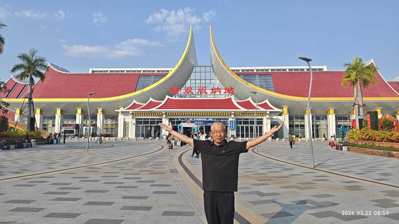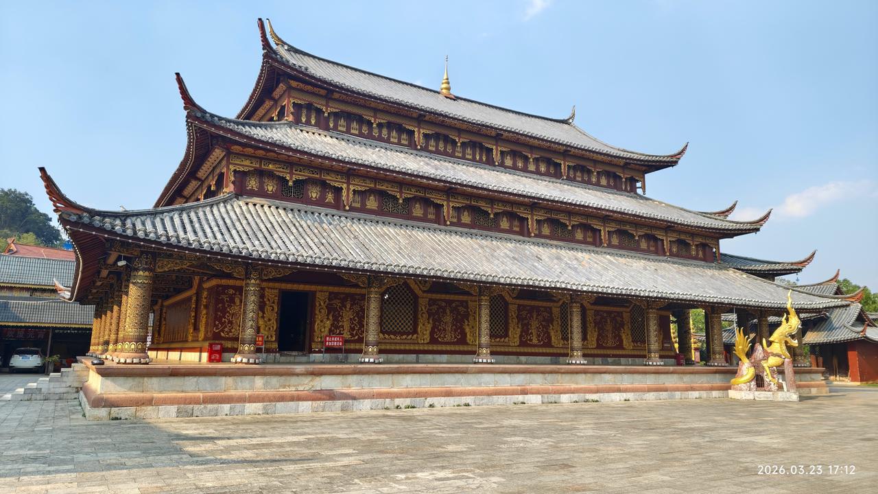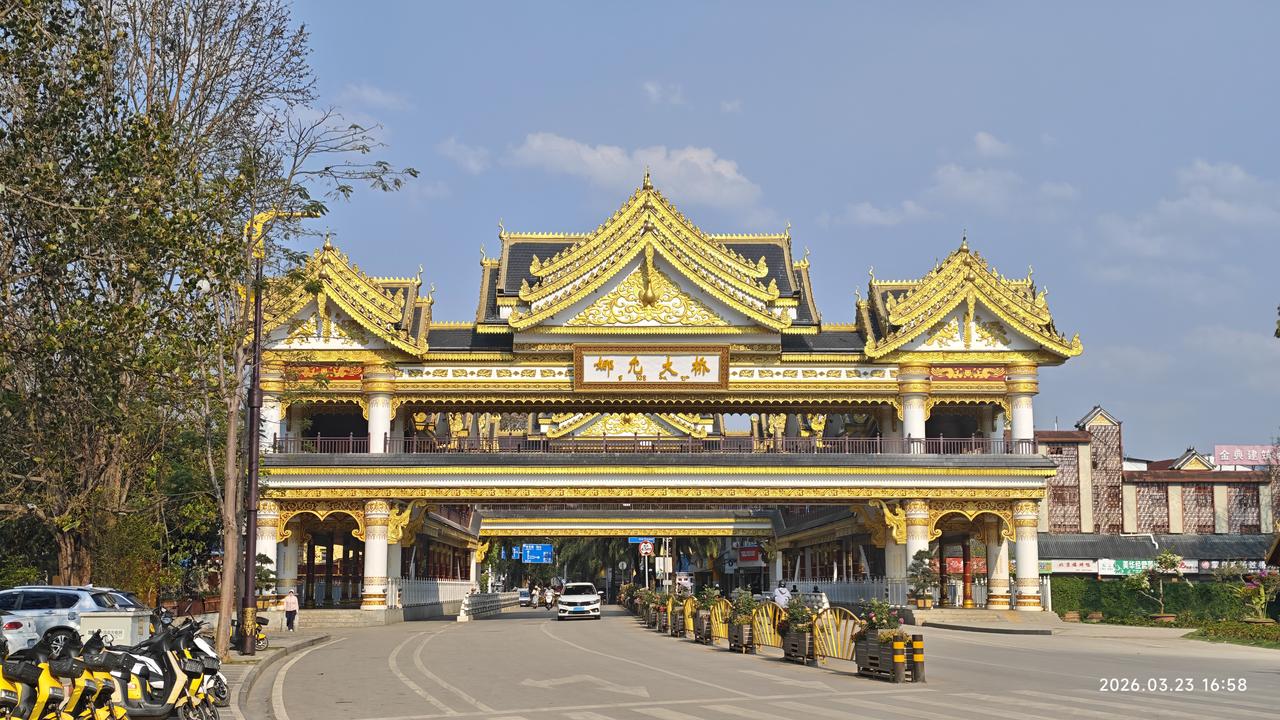 [环国行摄】第三阶段西部篇D38天总第93天:景洪市~孟连县。 1.路线:景洪市~勐海县~孟连县 2.今日行驶210公里,累计公里 3.主要景点:景洪般若寺,景真八角亭,娜允古城,孟连大金塔,孟连总佛寺,中佛寺 4.行程: 想来想去,今天还是出发。在酒店虽然还能待半天,但憋得慌。早上8点多出发,先到景洪市外不远处的西双版纳火车站打卡。之后到不远处的般若寺,白色的建筑金碧辉煌。 之后继续前行,到达勐海县。县城很平常,在这里吃了午饭。之后出发。听说明天24号凌晨油价要涨一块六七,在半路上加满了油。油站都最多加200元的,加了三次才加满。赶上这个时候了,也是没办法呀。再贵也要往前跑啊。无非就是多花两三千呗。 一点多到达景真八角亭,这里的寺庙非常的辉煌。建在一个山头上,那个几百年的菩提树也非常壮观。 景真八角亭是景真中心佛寺的重要建筑,坐落在景真村旁一座紧靠流沙河的圆形山丘之巅。八角亭形呈八角之状,属砖木结构,亭约20余米高,由基座、亭身、刹顶三部分组成。据说亭子是按照佛祖释迦牟尼的金纱台帽“卡钟罕"的式样修建而成的,专供高僧诵读经文之用。亭有8个角,代表佛祖身边的8个“麻哈厅”(高僧);亭上面向东南西北的4道门,表示信徒们要把佛教的思想传至四面八方。 然后继续前行。勐海县界的219路又窄又破车还非常多。到达澜沧县界之后,路况好了很多。路过景迈山,原计划要去的,但看了几个网友介绍之后,要走15km的碎石路,经常有爆胎的。而且几个古寨也没什么看头,还要住一晚上。放弃了。又经过一个老达堡村寨,距离大公路15km远,感觉也很平常,也放弃。继续赶路,我们没有选择绕行澜沧县城,而是抄近路翻山越岭,景色还不错。 到达孟连县城之后,先后到大金塔、娜允古城,中佛寺,总佛寺等转了转。地方都不大。晚上就露营在古城对过的停车场,挺大的。中午虽然热,但晚上很凉快,很舒服。 孟连娜允古镇是中国至今保存完好的最后一个傣族古镇,已有700多年的历史。‌“娜允”在傣语中意为“内城”,古镇的房屋建筑多为傣汉结合的风格,形成了独特的建筑群。 5.住宿:娜允古城停车场露营。 6.路况:景洪到勐海界路窄车多。到澜沧县之后,路宽车少。 7.天气温度:2026.3.23,12-29度,中午较热,早晚凉爽。