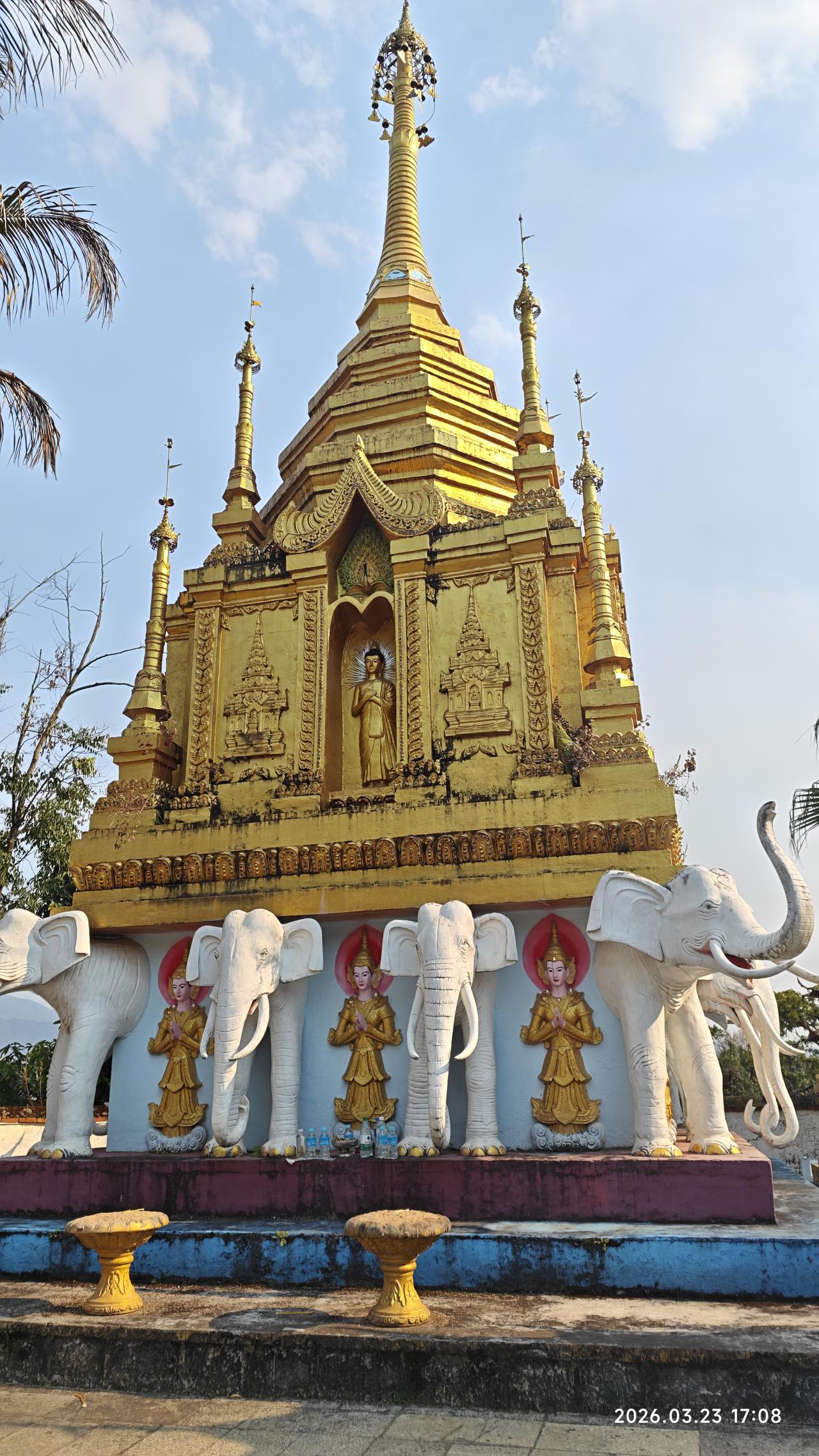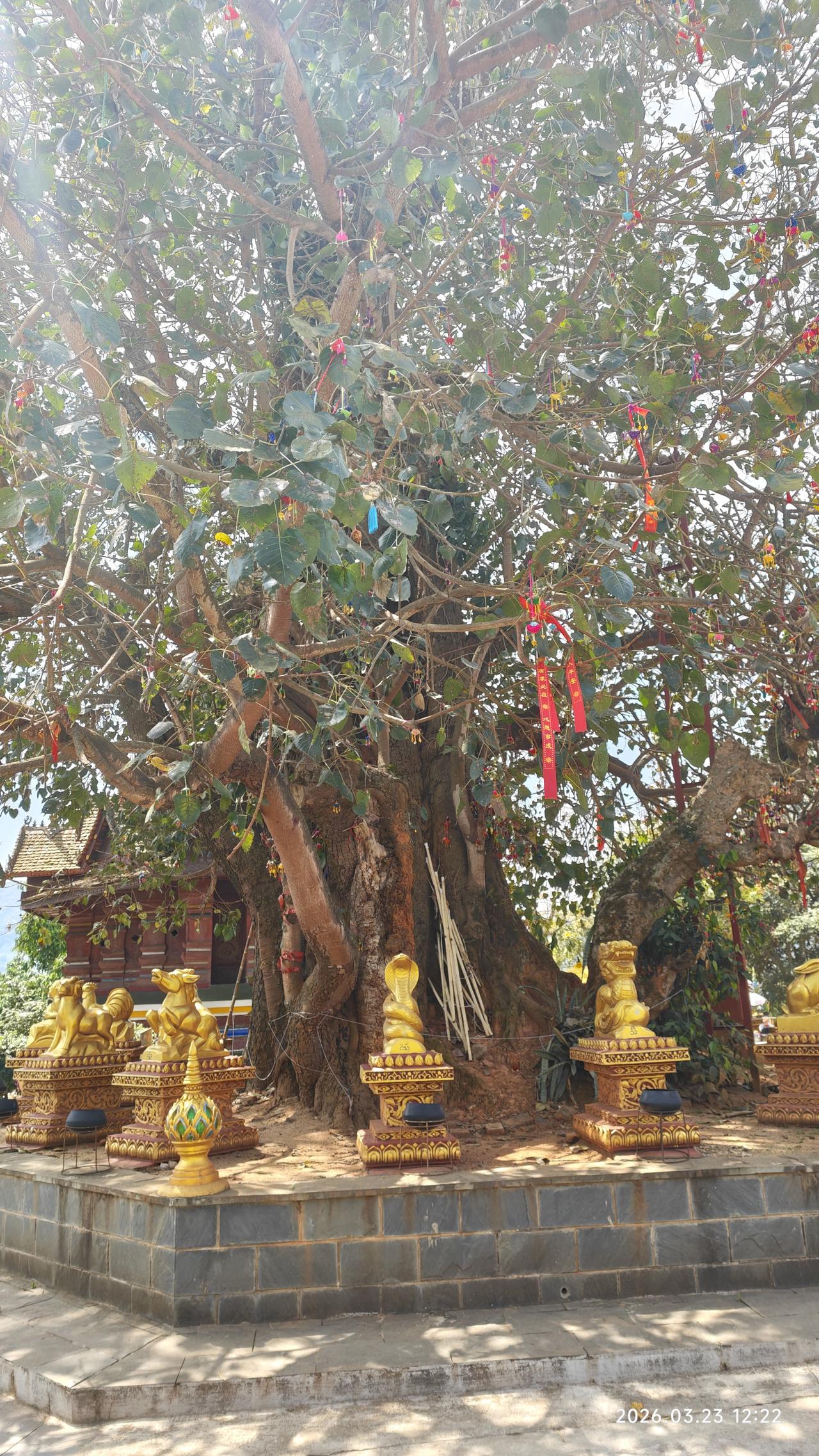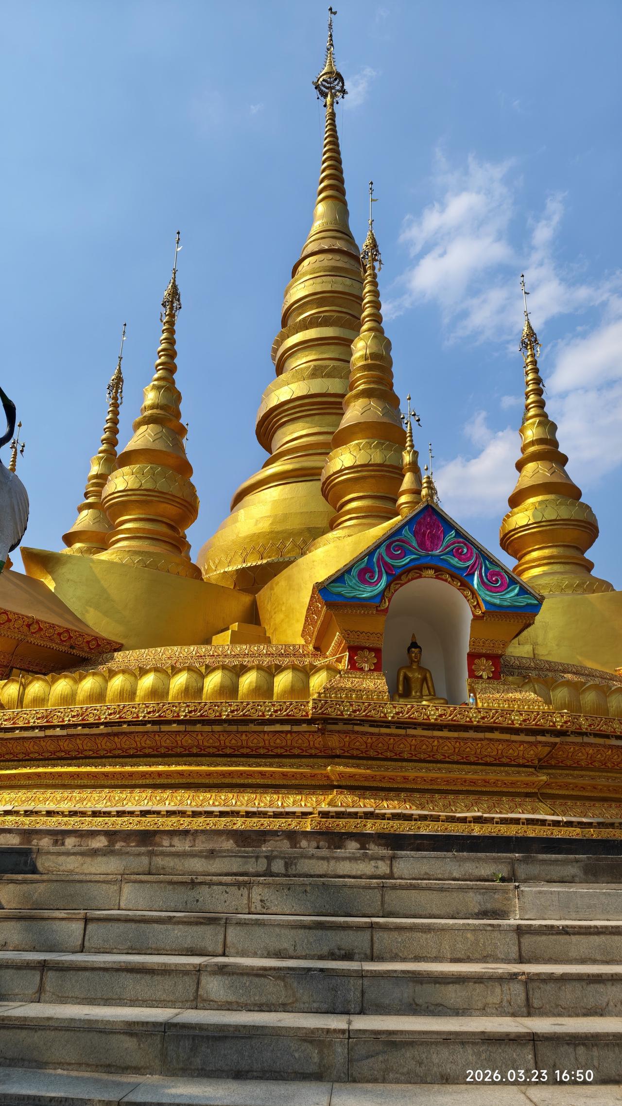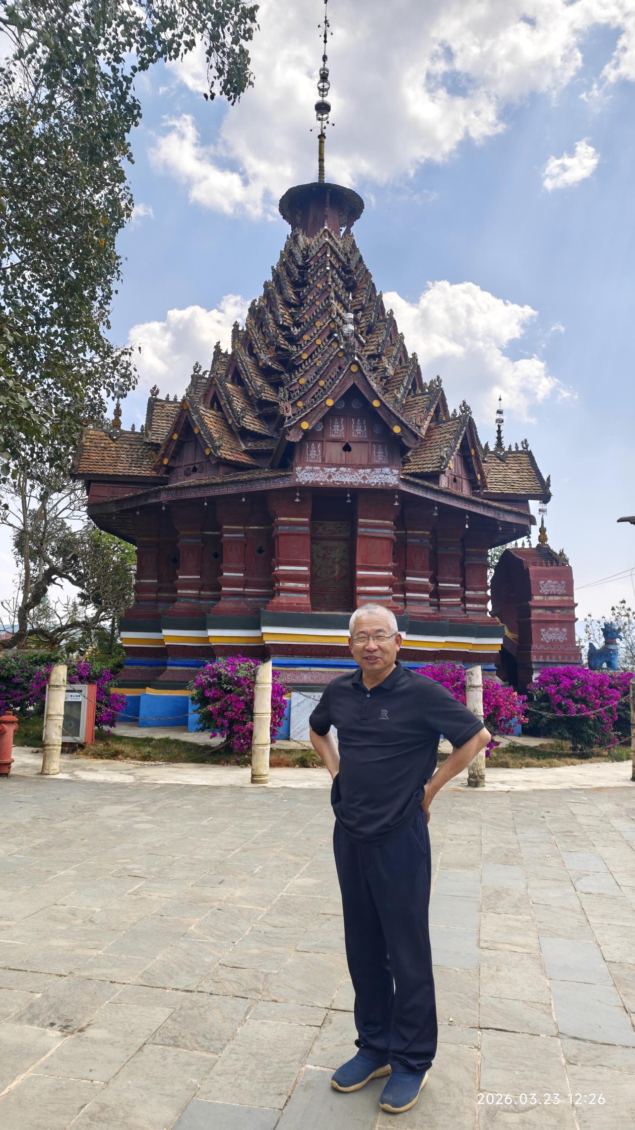 [环国行摄】第三阶段西部篇D38天总第93天:景洪市~孟连县。 1.路线:景洪市~勐海县~孟连县 2.今日行驶210公里,累计公里 3.主要景点:景洪般若寺,景真八角亭,娜允古城,孟连大金塔,孟连总佛寺,中佛寺 4.行程: 想来想去,今天还是出发。在酒店虽然还能待半天,但憋得慌。早上8点多出发,先到景洪市外不远处的西双版纳火车站打卡。之后到不远处的般若寺,白色的建筑金碧辉煌。 之后继续前行,到达勐海县。县城很平常,在这里吃了午饭。之后出发。听说明天24号凌晨油价要涨一块六七,在半路上加满了油。油站都最多加200元的,加了三次才加满。赶上这个时候了,也是没办法呀。再贵也要往前跑啊。无非就是多花两三千呗。 一点多到达景真八角亭,这里的寺庙非常的辉煌。建在一个山头上,那个几百年的菩提树也非常壮观。 景真八角亭是景真中心佛寺的重要建筑,坐落在景真村旁一座紧靠流沙河的圆形山丘之巅。八角亭形呈八角之状,属砖木结构,亭约20余米高,由基座、亭身、刹顶三部分组成。据说亭子是按照佛祖释迦牟尼的金纱台帽“卡钟罕"的式样修建而成的,专供高僧诵读经文之用。亭有8个角,代表佛祖身边的8个“麻哈厅”(高僧);亭上面向东南西北的4道门,表示信徒们要把佛教的思想传至四面八方。 然后继续前行。勐海县界的219路又窄又破车还非常多。到达澜沧县界之后,路况好了很多。路过景迈山,原计划要去的,但看了几个网友介绍之后,要走15km的碎石路,经常有爆胎的。而且几个古寨也没什么看头,还要住一晚上。放弃了。又经过一个老达堡村寨,距离大公路15km远,感觉也很平常,也放弃。继续赶路,我们没有选择绕行澜沧县城,而是抄近路翻山越岭,景色还不错。 到达孟连县城之后,先后到大金塔、娜允古城,中佛寺,总佛寺等转了转。地方都不大。晚上就露营在古城对过的停车场,挺大的。中午虽然热,但晚上很凉快,很舒服。 孟连娜允古镇是中国至今保存完好的最后一个傣族古镇,已有700多年的历史。‌“娜允”在傣语中意为“内城”,古镇的房屋建筑多为傣汉结合的风格,形成了独特的建筑群。 5.住宿:娜允古城停车场露营。 6.路况:景洪到勐海界路窄车多。到澜沧县之后,路宽车少。 7.天气温度:2026.3.23,12-29度,中午较热,早晚凉爽。
