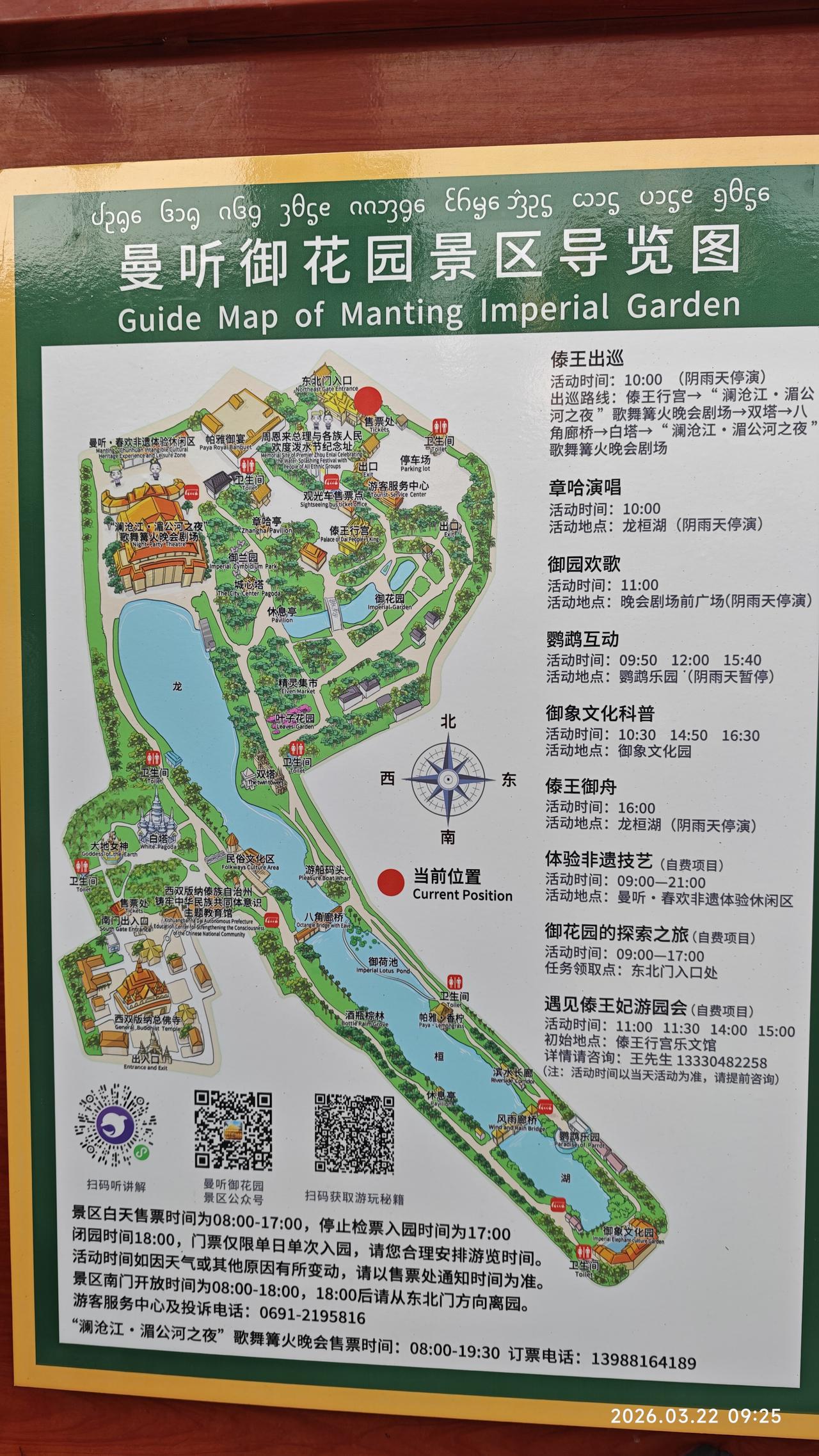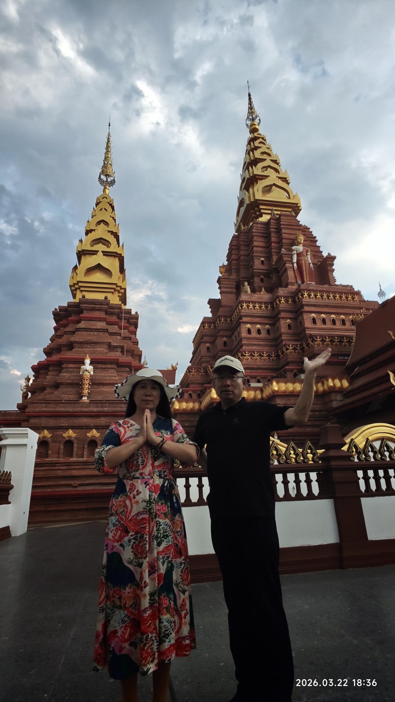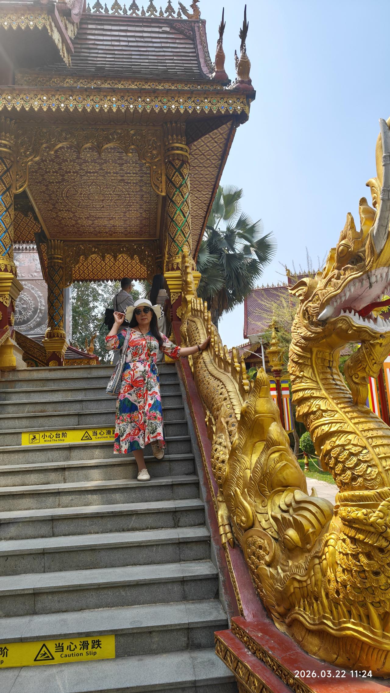 3.22 [环国行摄】第三阶段西部篇D37天总第92天:景洪市。 1.路线:景洪市 2.今日行驶0公里 3.主要景点: 曼亭御花园,总佛寺,勐乐大佛寺,星光夜市,大金塔 4.行程: 早晨洗了洗衣服。9点出发,先到曼亭公园。曼听公园被傣族人叫做“春欢”,意为"灵魂之园",被誉为西双版纳的“灵魂之园”,因傣王妃来这里游玩时被公园美景吸引灵魂而得名。公园已有1300多年的历史,是西双版纳最古老的公园之一,过去是傣王的御花园。但感觉也很平常。今天是休息日,人很多。 出曼亭公园,就是总佛寺,首先映入眼帘的是其宏伟壮观的建筑群。佛寺的建筑风格独特,融合了南传佛教与傣族传统建筑特色,以金黄色为主基调,气势恢宏、雕刻精美、色彩华丽。大殿、钟楼、鼓楼等建筑错落有致,每一处细节都透露出匠人的精湛技艺与对佛教的虔诚信仰。梁柱上雕刻着繁复的图案,既有佛教的莲花、佛像等元素,也有傣族特有的图腾与神话传说,让人不禁驻足欣赏,感受那份来自远古的神秘与庄严。规模很大。勐泐大佛寺也去了,但没有进去。门票80。感觉也没多少东西。 中午休息了一会。下午到大金塔,星光夜市。 大金塔也称缅甸大金塔,是景洪市的总佛寺,主管景洪市内205座寺院,是南传佛教的圣地。大金塔寺体现了小乘佛教的精髓,融合了西双版纳及湄公河流域的傣泰文化精华。‌大金塔寺的主体建筑风格为经典的东南亚风格,塔身为赭红色,塔顶镀金。主塔高66.6米,寓意“一江连六国”,象征着澜沧江连接中国、泰国、缅甸、越南、老挝、柬埔寨六国。塔身采用四边形结构,每个面朝向不同的方向,代表着不同的国家。 没想到这里的夜景特别漂亮。但小吃就那么几样,看着摊子挺多挺大,没多少品种,转了半天也没什么可吃的。量又小又贵。最后吃了点越南卷粉,拌凉粉,还没吃饱。 5.住宿:程熙酒店住宿。 6.路况:无 7.天气温度:20-30度,晴天