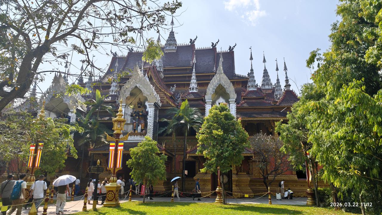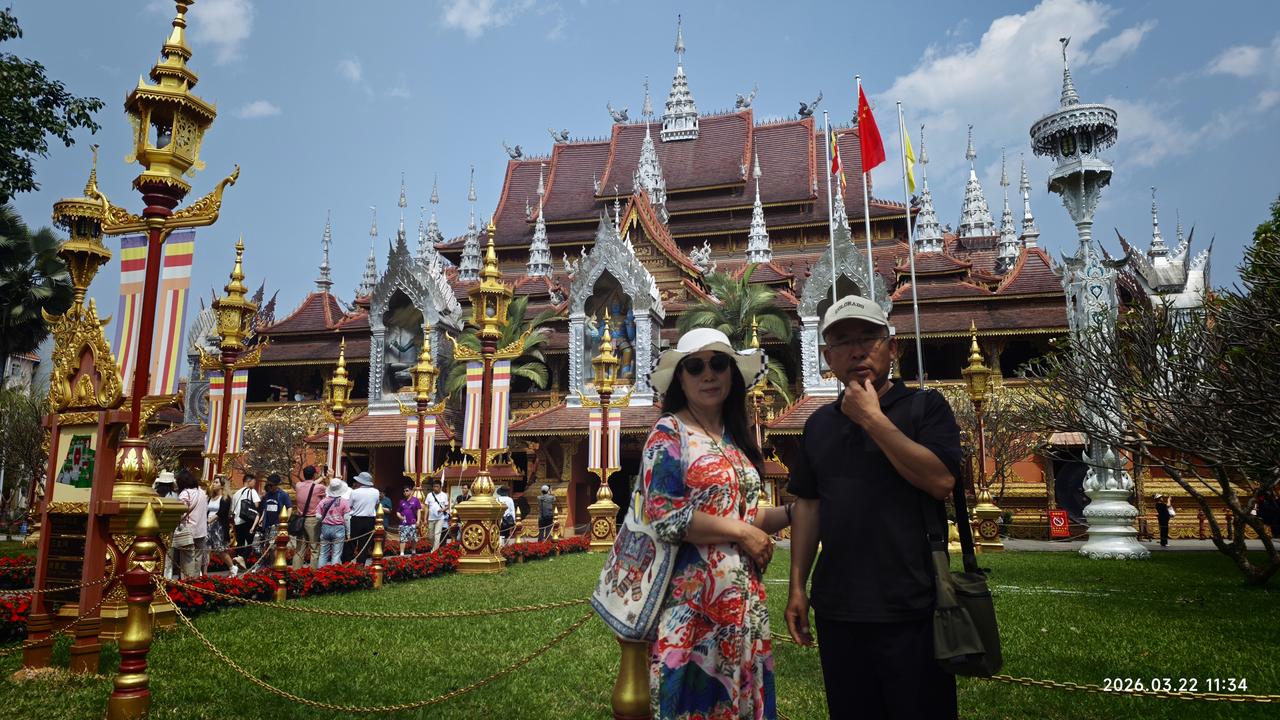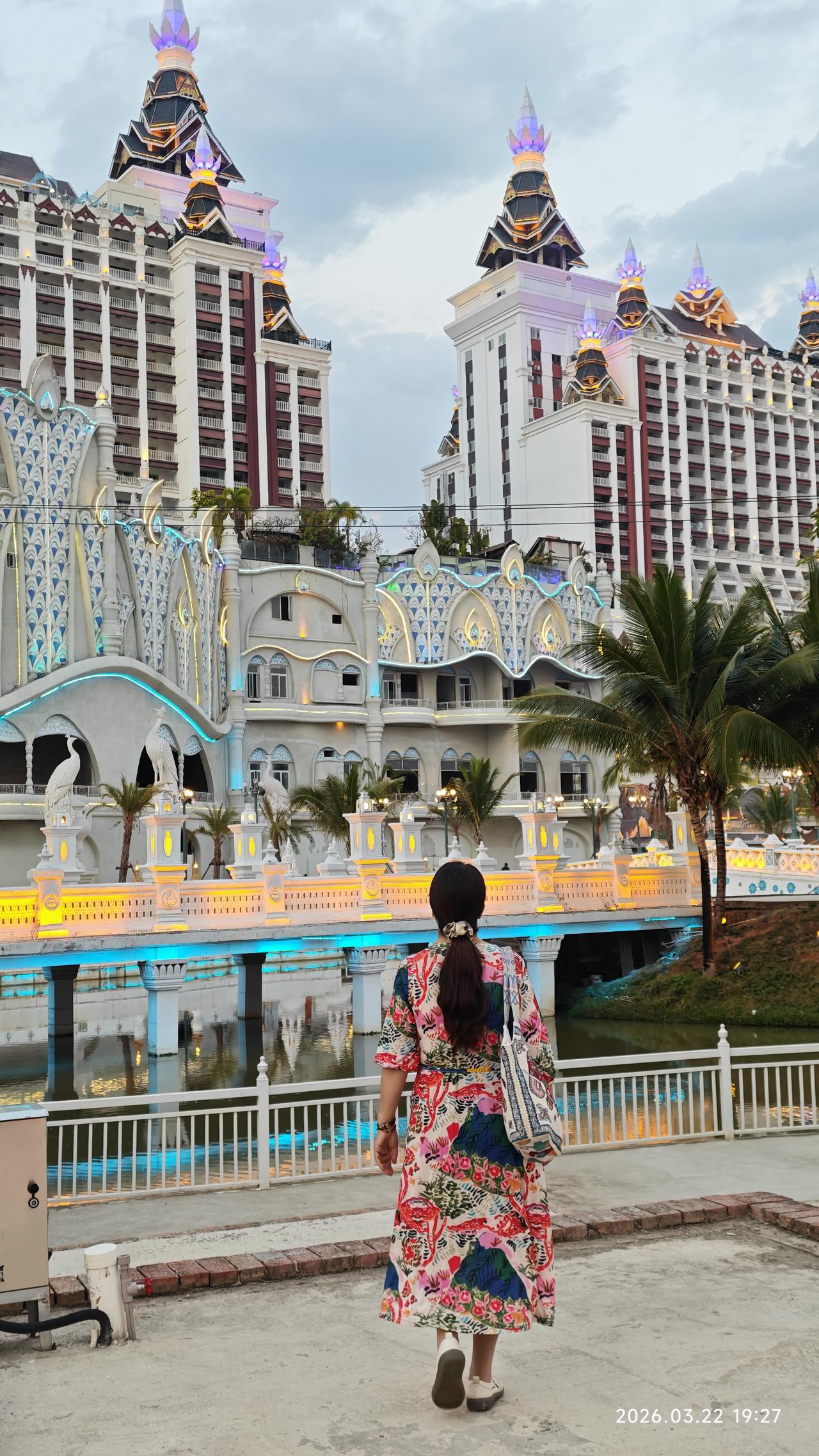 3.22 [环国行摄】第三阶段西部篇D37天总第92天:景洪市。 1.路线:景洪市 2.今日行驶0公里 3.主要景点: 曼亭御花园,总佛寺,勐乐大佛寺,星光夜市,大金塔 4.行程: 早晨洗了洗衣服。9点出发,先到曼亭公园。曼听公园被傣族人叫做“春欢”,意为"灵魂之园",被誉为西双版纳的“灵魂之园”,因傣王妃来这里游玩时被公园美景吸引灵魂而得名。公园已有1300多年的历史,是西双版纳最古老的公园之一,过去是傣王的御花园。但感觉也很平常。今天是休息日,人很多。 出曼亭公园,就是总佛寺,首先映入眼帘的是其宏伟壮观的建筑群。佛寺的建筑风格独特,融合了南传佛教与傣族传统建筑特色,以金黄色为主基调,气势恢宏、雕刻精美、色彩华丽。大殿、钟楼、鼓楼等建筑错落有致,每一处细节都透露出匠人的精湛技艺与对佛教的虔诚信仰。梁柱上雕刻着繁复的图案,既有佛教的莲花、佛像等元素,也有傣族特有的图腾与神话传说,让人不禁驻足欣赏,感受那份来自远古的神秘与庄严。规模很大。勐泐大佛寺也去了,但没有进去。门票80。感觉也没多少东西。 中午休息了一会。下午到大金塔,星光夜市。 大金塔也称缅甸大金塔,是景洪市的总佛寺,主管景洪市内205座寺院,是南传佛教的圣地。大金塔寺体现了小乘佛教的精髓,融合了西双版纳及湄公河流域的傣泰文化精华。‌大金塔寺的主体建筑风格为经典的东南亚风格,塔身为赭红色,塔顶镀金。主塔高66.6米,寓意“一江连六国”,象征着澜沧江连接中国、泰国、缅甸、越南、老挝、柬埔寨六国。塔身采用四边形结构,每个面朝向不同的方向,代表着不同的国家。 没想到这里的夜景特别漂亮。但小吃就那么几样,看着摊子挺多挺大,没多少品种,转了半天也没什么可吃的。量又小又贵。最后吃了点越南卷粉,拌凉粉,还没吃饱。 5.住宿:程熙酒店住宿。 6.路况:无 7.天气温度:20-30度,晴天