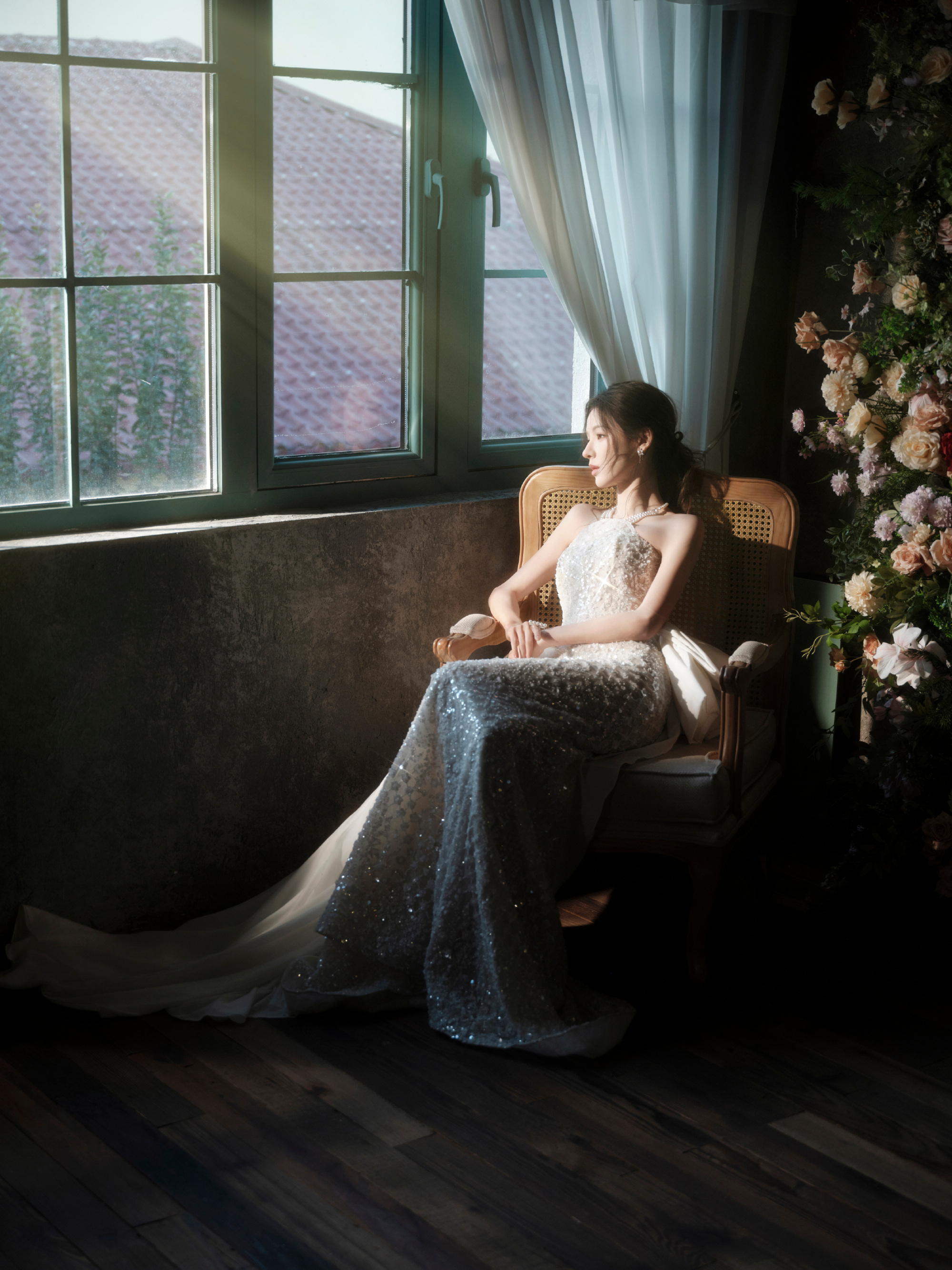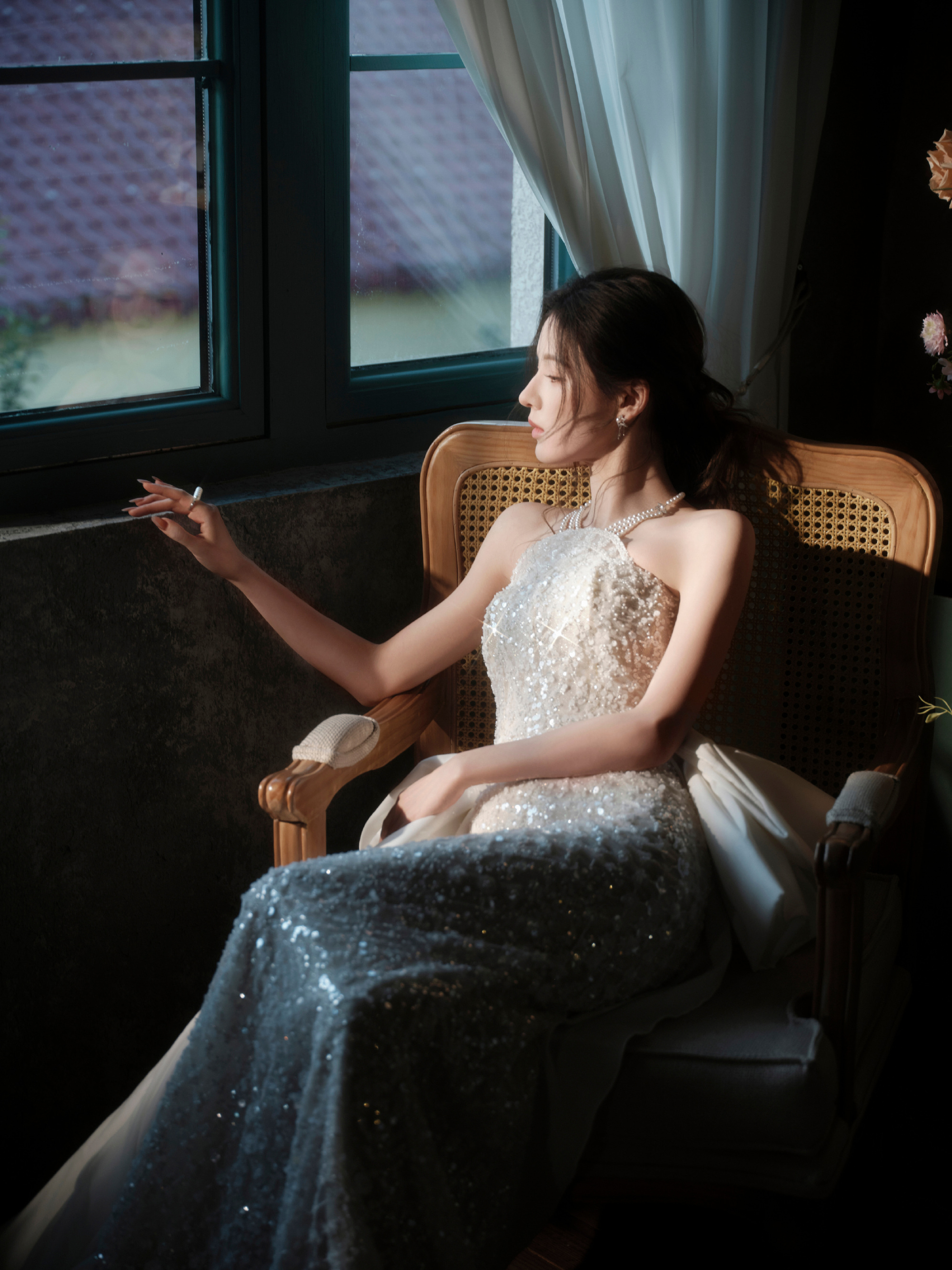 张予曦,一袭银色蕾丝裙,治愈美好。张予曦