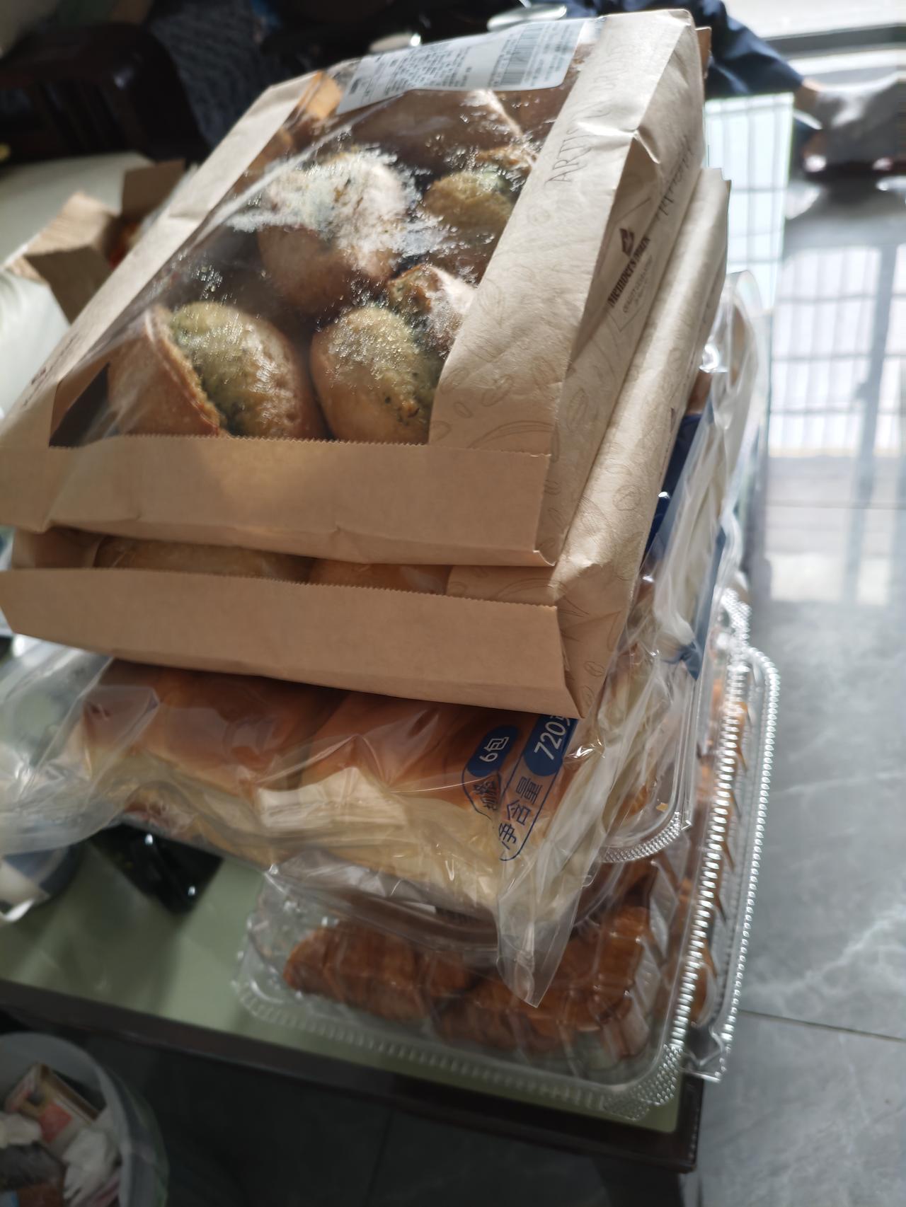 晒出我的今日美食儿媳妇在家我们每天有美食吃,这是她昨天买的面包和蛋糕,一共花了二百多元钱,分了些在家里,有的给孙子带去学校吃!