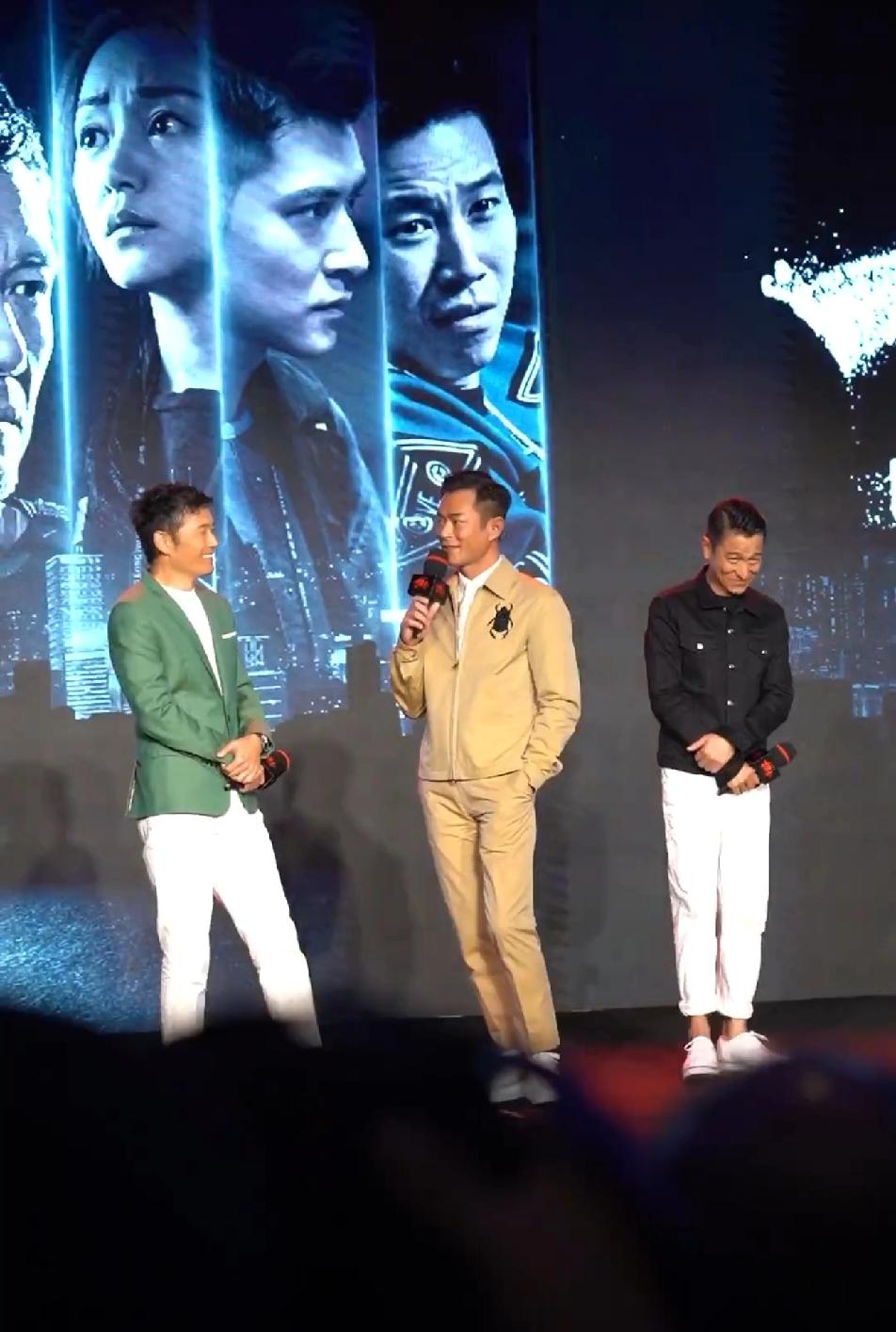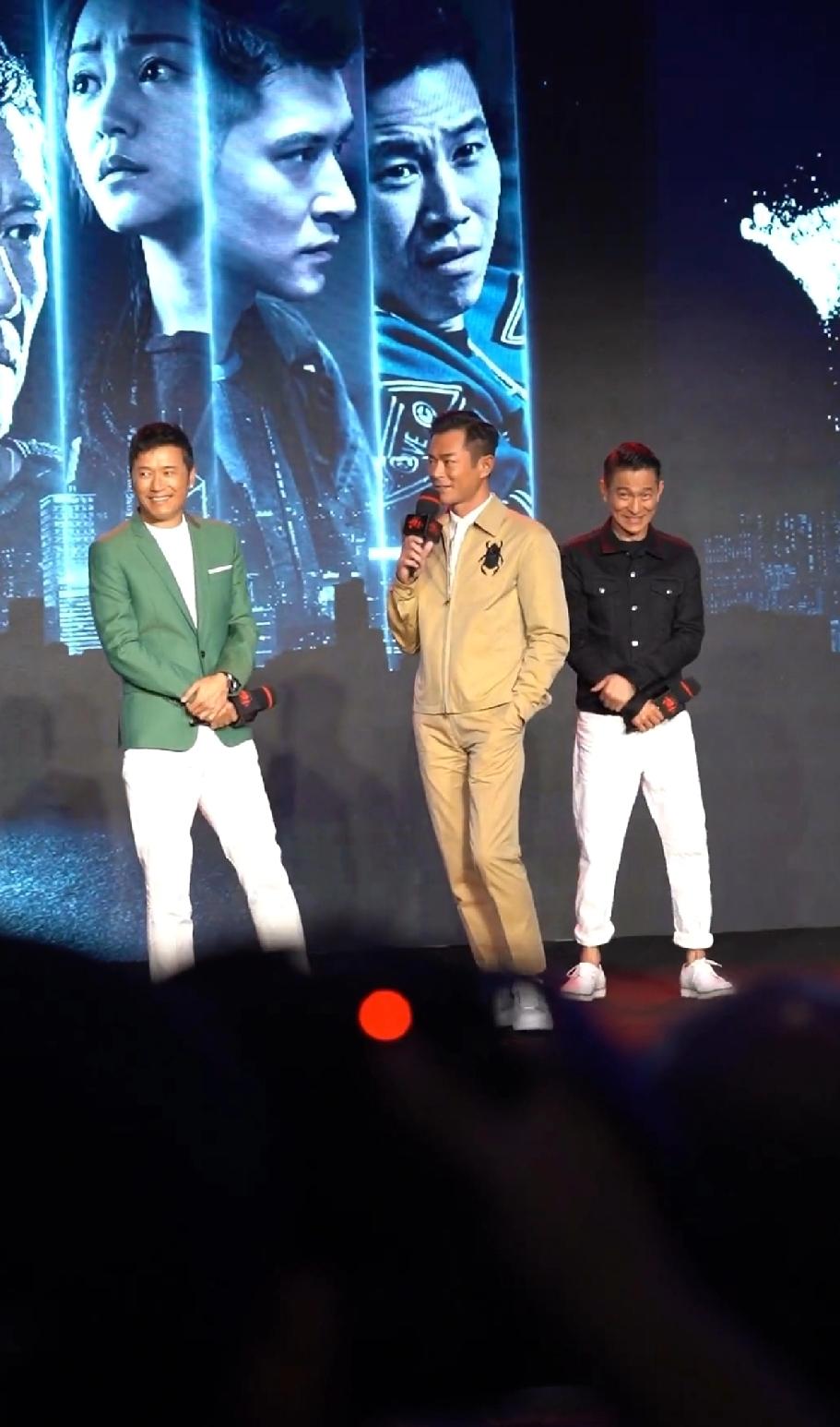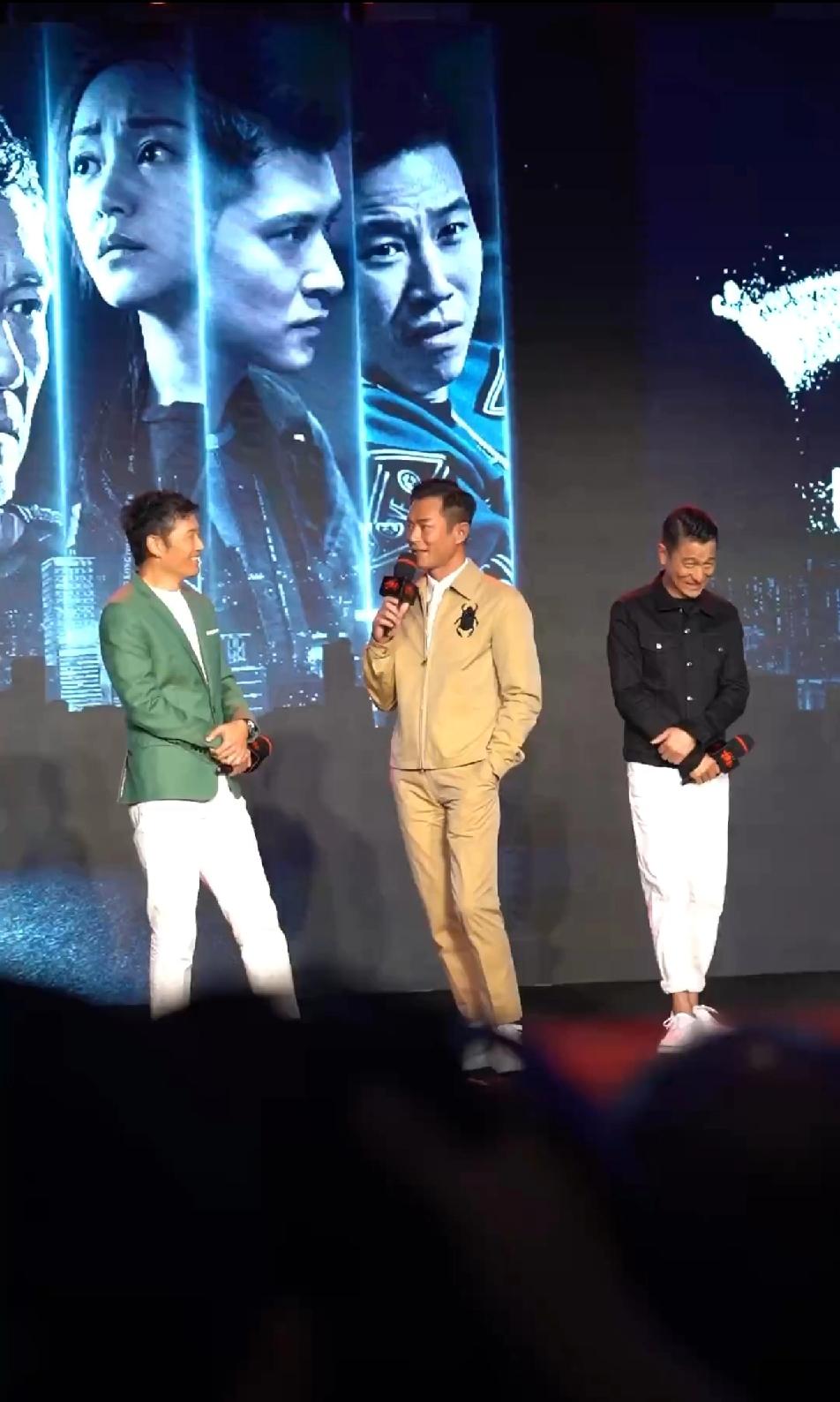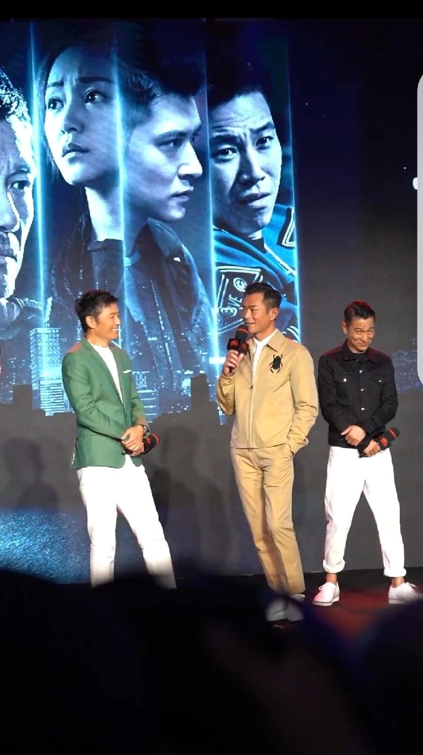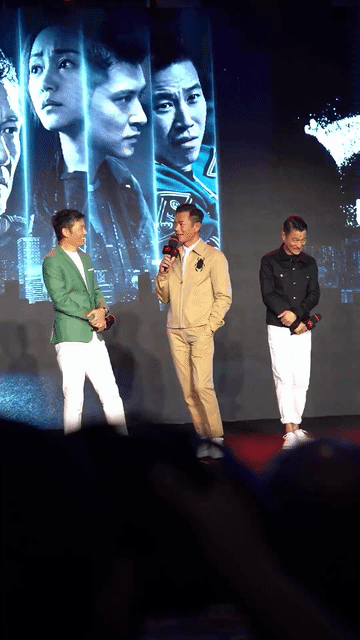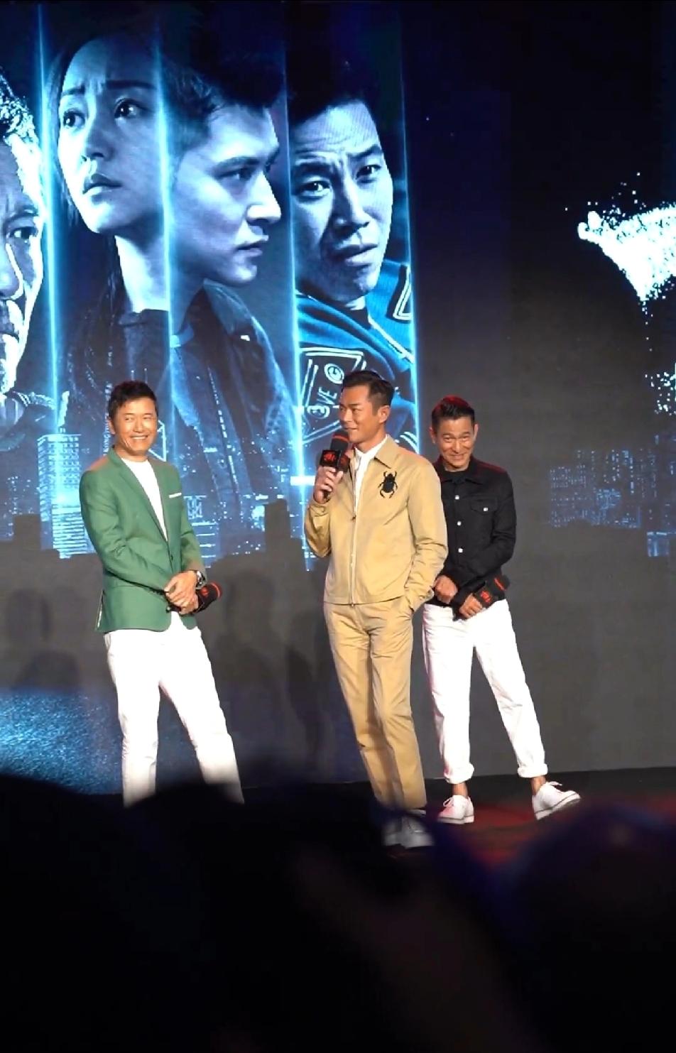 看派头和气场,古天乐像大哥,刘德华倒像是小弟,古天乐站C,一手抄裤兜,十分气派,华哥那是怎么了?站在古天乐身后,脸上那小表情,瞅着怎么有点娇羞。这样一看,苗侨伟是真的帅,古天乐气场最足,华哥还是一如既的平易近人接地气!刘德华
