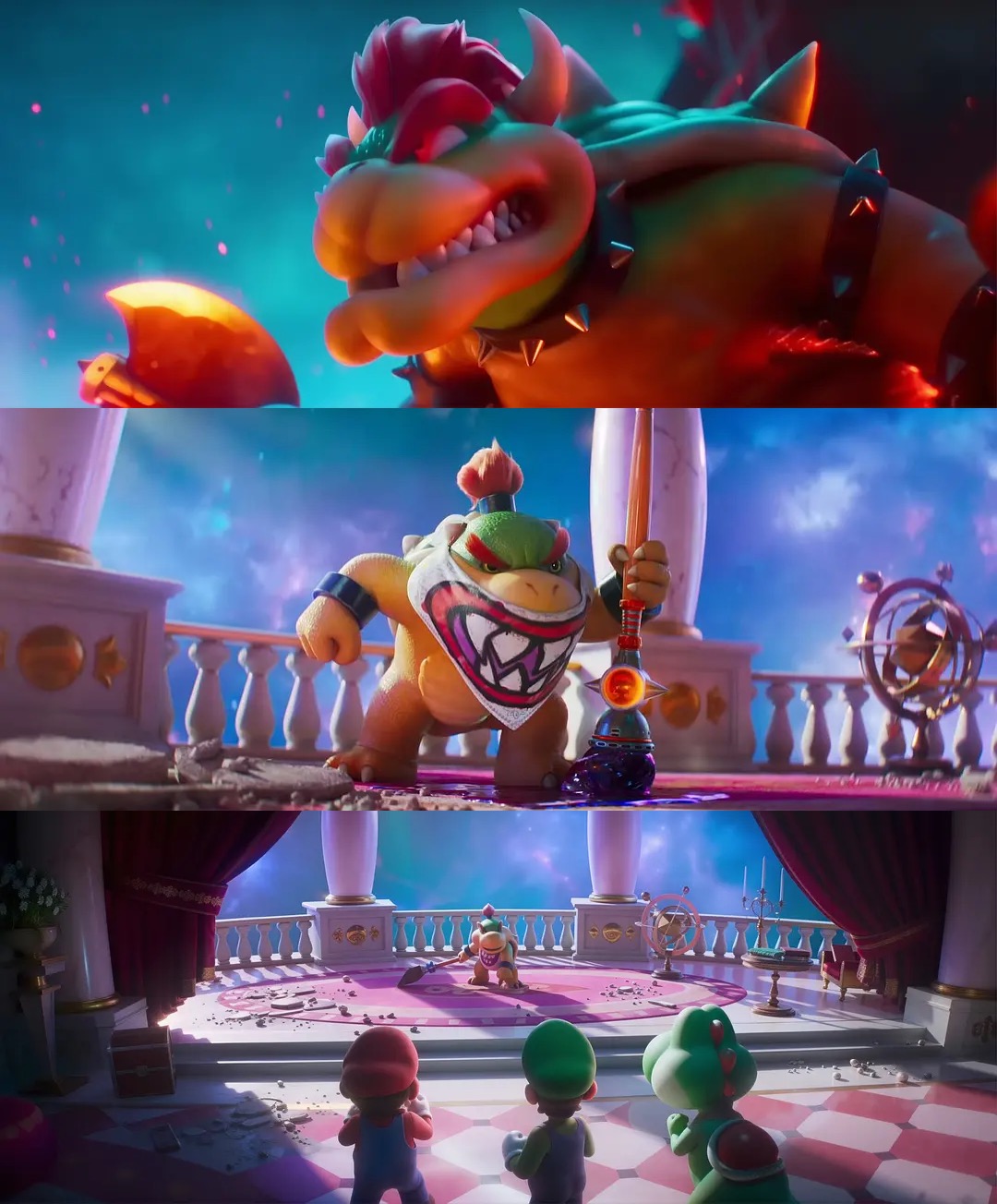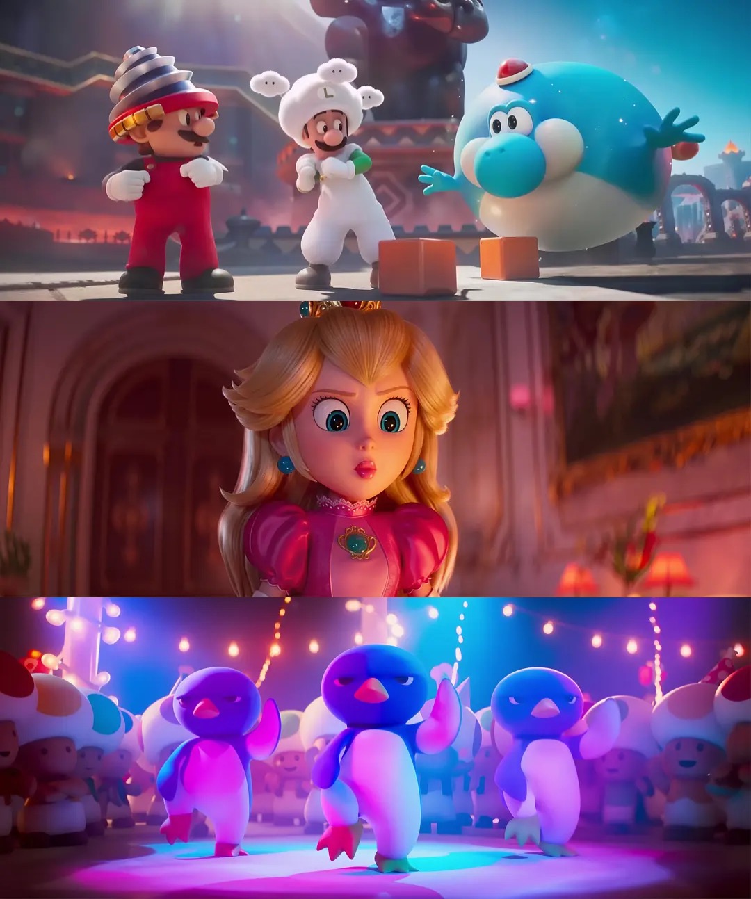 改编后的电影,自然也少不了结合游戏场景创作出更多好玩热闹的剧情,比如马里欧兄弟获得各种新能量后,与酷霸父子展开搏斗的戏码。上一部里,碧姬公主把缩小后的酷霸关了起来。而这一部小酷霸一上来就把碧姬公主的姐姐罗莎塔公主抓走了,于是才让碧姬公主和马里欧兄弟有机会结伴去营救罗莎塔。
