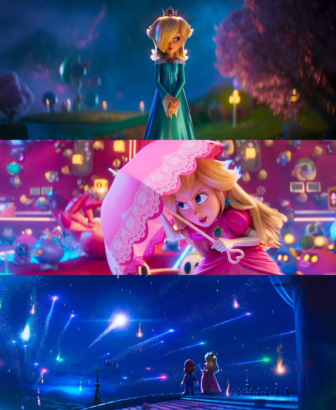 本来游戏的核心故事就少不了最终的营救,而这次电影版则强化了姐妹情,罗莎塔公主和碧姬公主两人的手触碰贴合就会产生巨大能量,于是为了妹妹的安全,姐姐当年把妹妹碧姬送到其他地方。这次的续作里,还专门为碧姬公主设计了以一敌众的大场面搏斗戏。