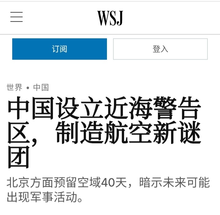 华尔街日报:中国关闭了其东部沿海大片空域约40天(3月27日至5月6日),比通常几天的军事空域关闭时间长得多,但没有说明原因。这些区域位于中国沿海靠近黄海和东海,并不紧邻台湾。