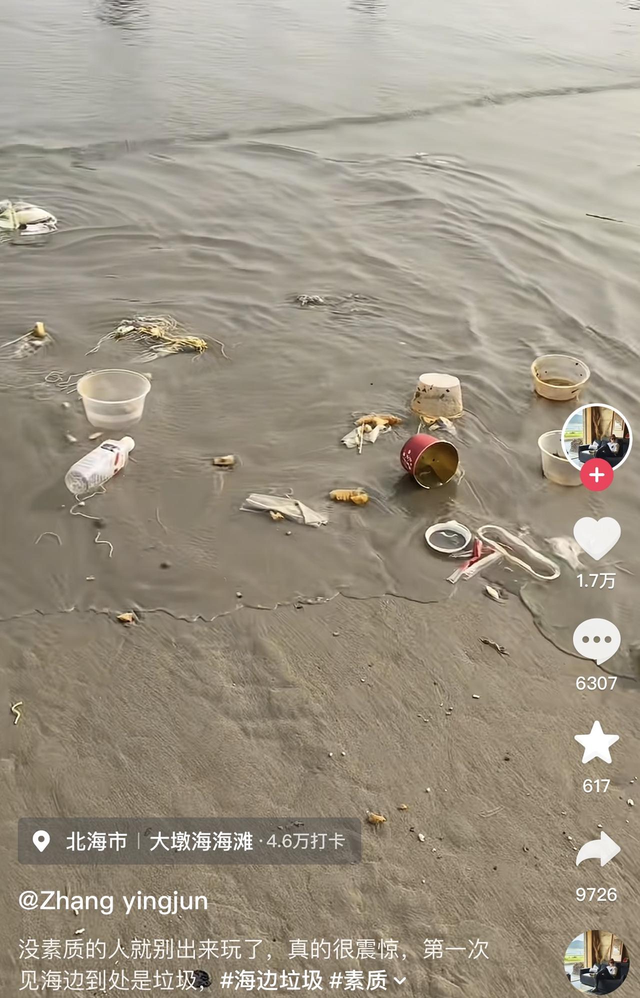 网友去海边游玩的时候,被这一幕给气到了,原来他看到沙滩上还有海水里面漂浮着大量的垃圾,这些垃圾都是生活垃圾。可以看到里面有不少的一次性餐具,还有矿泉水瓶等等。这些都是来游玩的人留下的垃圾。 只能说现实当中这种没素质的人非常的多,而且还没有办法去解决这个问题。也正是如此。才会有那么多志愿者,没事的时候愿意去海边捡捡垃圾。 但你别说,没事的时候去捡一下垃圾,为城市,为环境做出贡献。这也会让你感觉内心得到了升华,得到了满足。