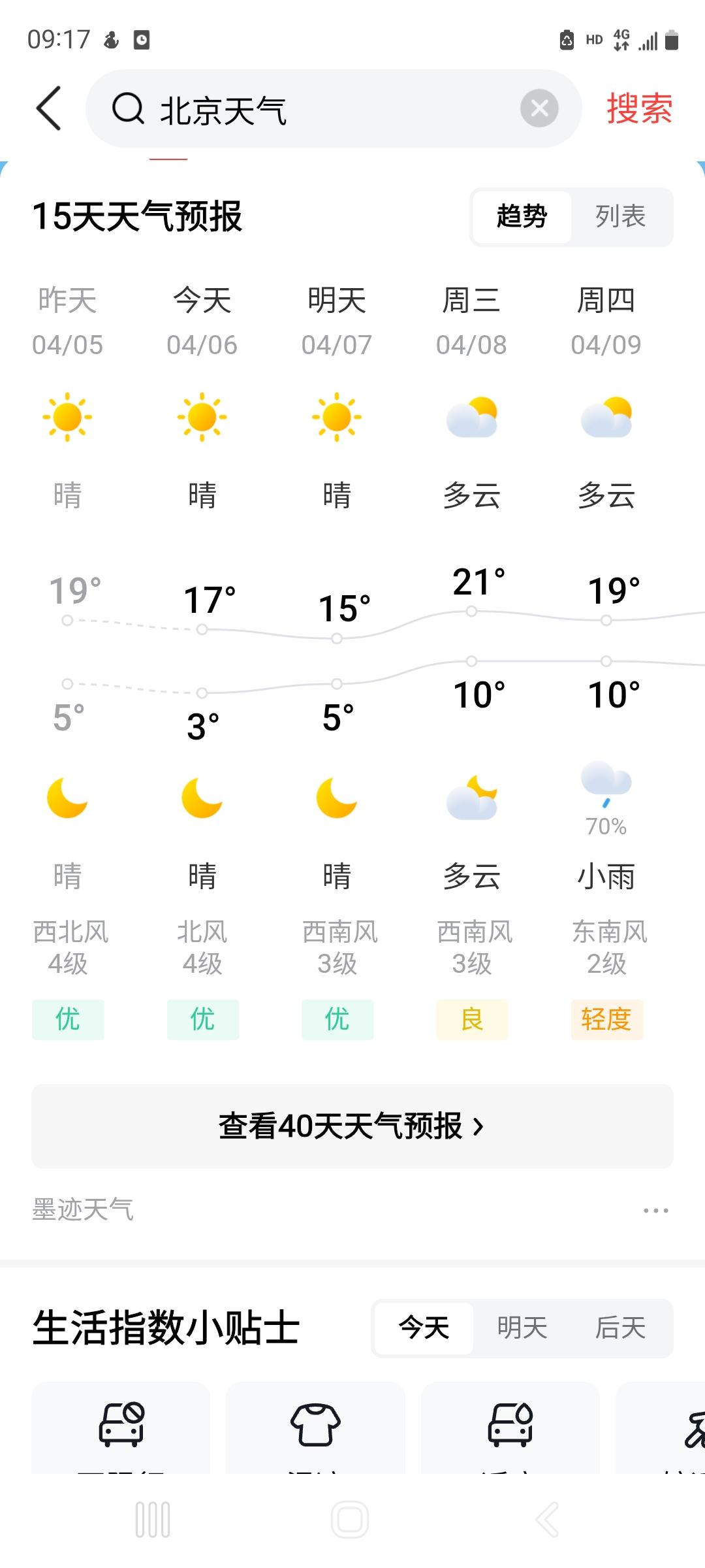 北京人实现蓝天自由了!连续三天。今天昨天都一级优,大蓝天,看预报明天也是优。 昨晚还到了久违的透亮清彻的夜空,云朵,圆月。 3月份北京整体空气质量远不如上海,大多日子存在不同程度的雾霾 ,优级天就好像就4天。但愿4月份一级优多起来,真正实现蓝天自由。 另附图:今日北京上海广州南京长沙城市空气质量报告。+雾霾科普图片。 /每日一报。