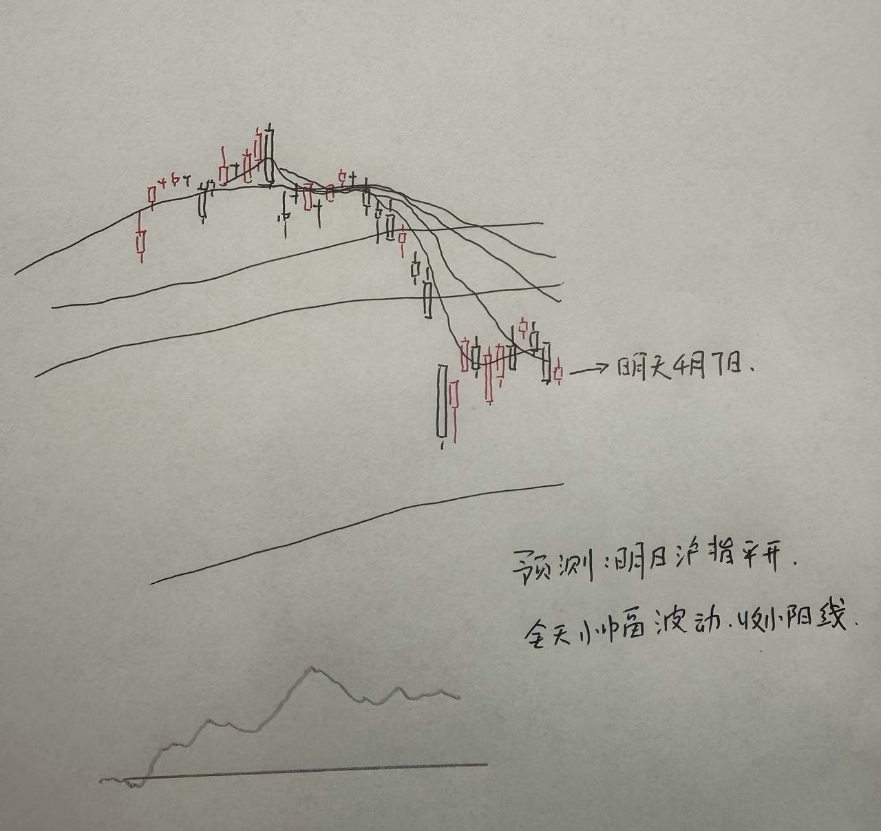所以,综合以上分析,对于明天市场走势,我个人的观点是不悲观,明天上证指数或能走出短线小幅震荡止跌的小阳线。那么明天A股到底怎么走?大家请看关于明天走势的手绘预测图。