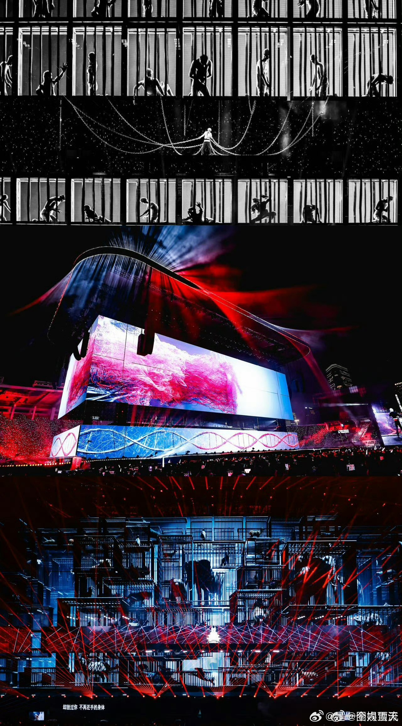 薛之谦四面台舞美要考博嘛沉浸式四面台藏满巧思,流动光束勾勒万千模样,从温柔星河到冷峻囚笼,从璀璨粉钻到梦幻彩虹,光有了形态,让每首歌都拥有专属立体氛围感。