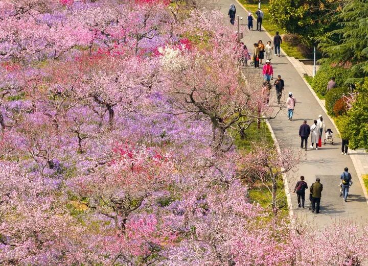 3月28日,游客在江苏淮安桃花坞公园赏花游玩。新华社发(贺敬华摄)