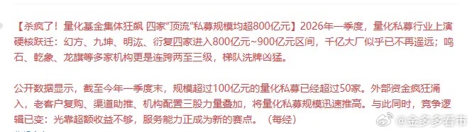 量化疯狂扩张,股民快速进场,市场持续走低!一季度量化再度疯狂扩张,百亿量化规模骤增,头部很快规模千亿,现在量化越来越强大,规模,算法,体量,市场完全被量化操控。