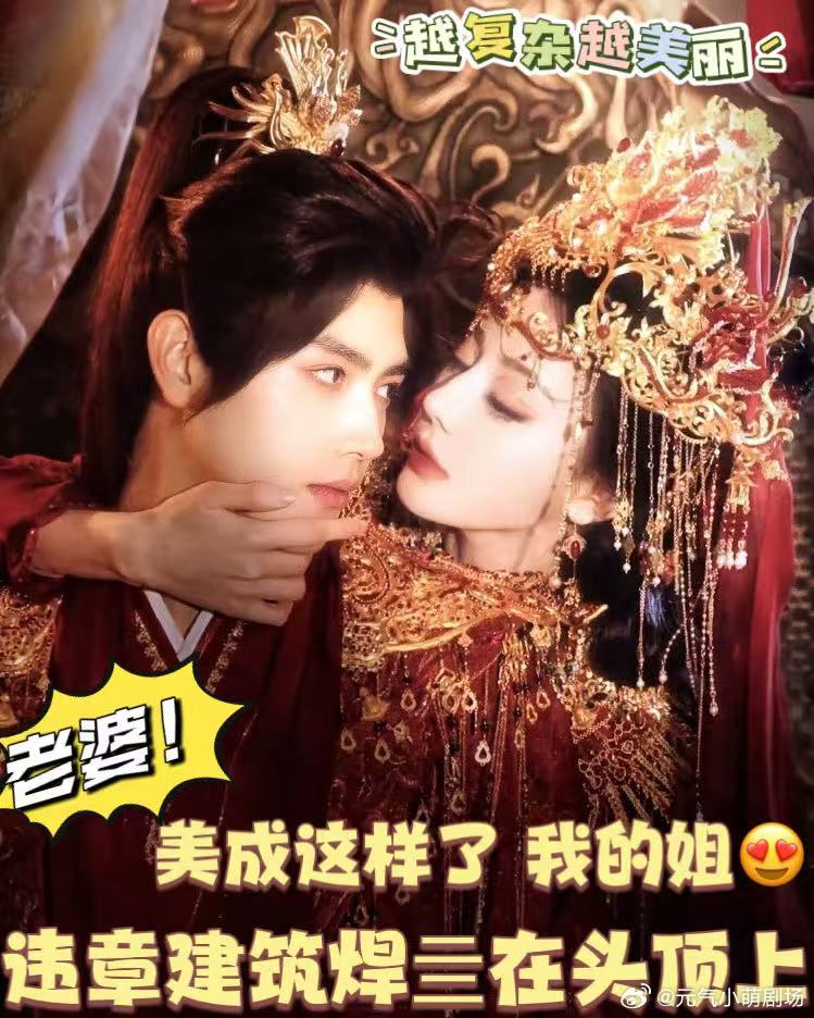 迪丽热巴违章建筑造型别人是头饰压人,她是人压头饰。越繁复越衬得眉目惊心动魄,越堆