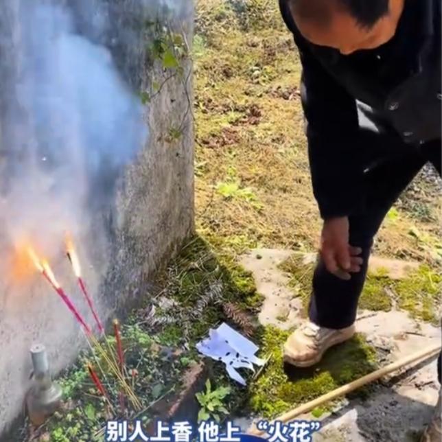 错把仙女棒当清香!80岁爷爷扫墓闹乌龙,烟火里藏着最暖的牵挂 四川这位80岁爷爷的扫墓乌龙,看哭了无数人。 清明时节,老人拎着小竹篮去墓园给先人祭祖,篮里没备传统线香,反倒装了一把色彩鲜亮的仙女棒。面对旁人疑惑的目光,他举着烟花一脸茫然,小声念叨:“这是什么香啊?以前烧的香不是这样的,闻着倒是挺热闹。” 这一幕被路人拍下上传后,瞬间冲上热搜。网友们笑着调侃:“烟花也是花,愿先人看得见热闹”“爷爷的孝心从不被形式定义”“把浪漫和思念都点给了地下的亲人”。评论区满是温情吐槽,有人想起自家长辈的可爱举动,有人感慨朴素的牵挂从来无关规矩。 没人会怪爷爷认错“香”。在他的年代,祭祖的香是袅袅青烟载着念想,是烟火寻常里的郑重仪式。而如今的仙女棒,是晚辈们藏在烟火里的心意——想让地下的亲人看看这热闹人间,想让祖辈也感受当下的鲜活与璀璨。 所谓孝心,从不是拘泥于传统形式的复刻,而是把牵挂揉进生活的点滴。爷爷不懂仙女棒的玩法,却懂要给先人带点“新鲜玩意儿”;我们不懂长辈的旧时光,却懂用他们能理解的方式,延续着代代相传的思念。 那些看似乌龙的瞬间,藏着最动人的人性温度。没有刻板的规矩束缚,没有形式主义的束缚,只有最纯粹的想念,和烟火人间里最温暖的传承。 愿每一份朴素的牵挂都被温柔以待,愿我们爱的人,无论在何处,都能感受到这份炽热的心意。#扫墓乌龙#扫墓人