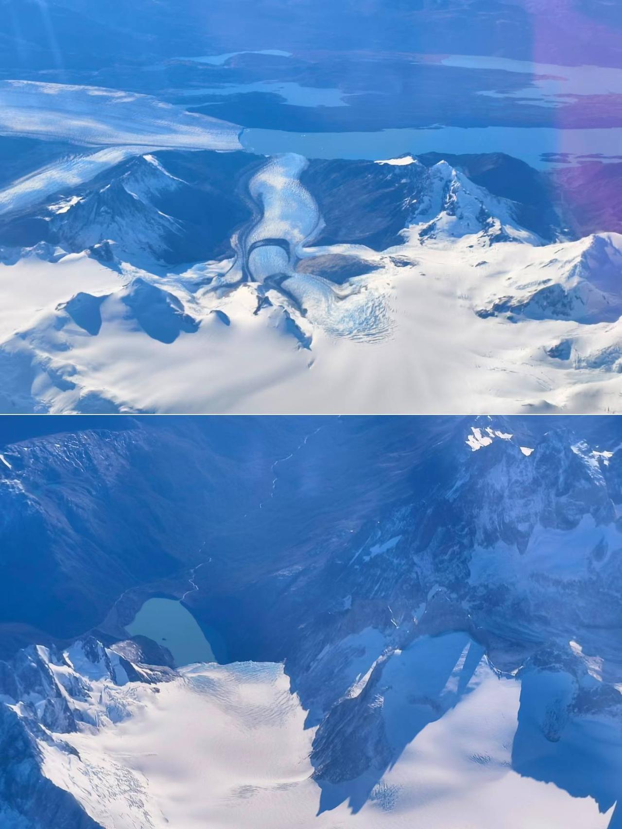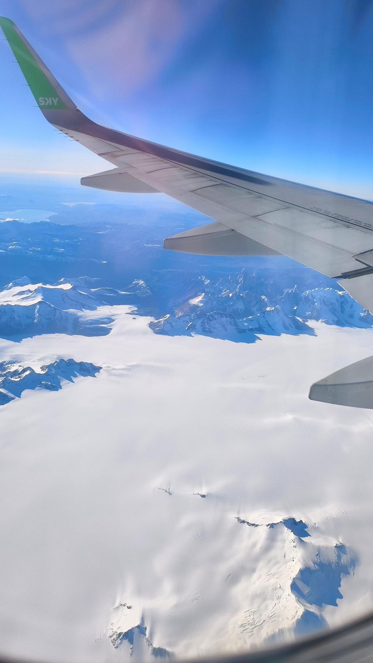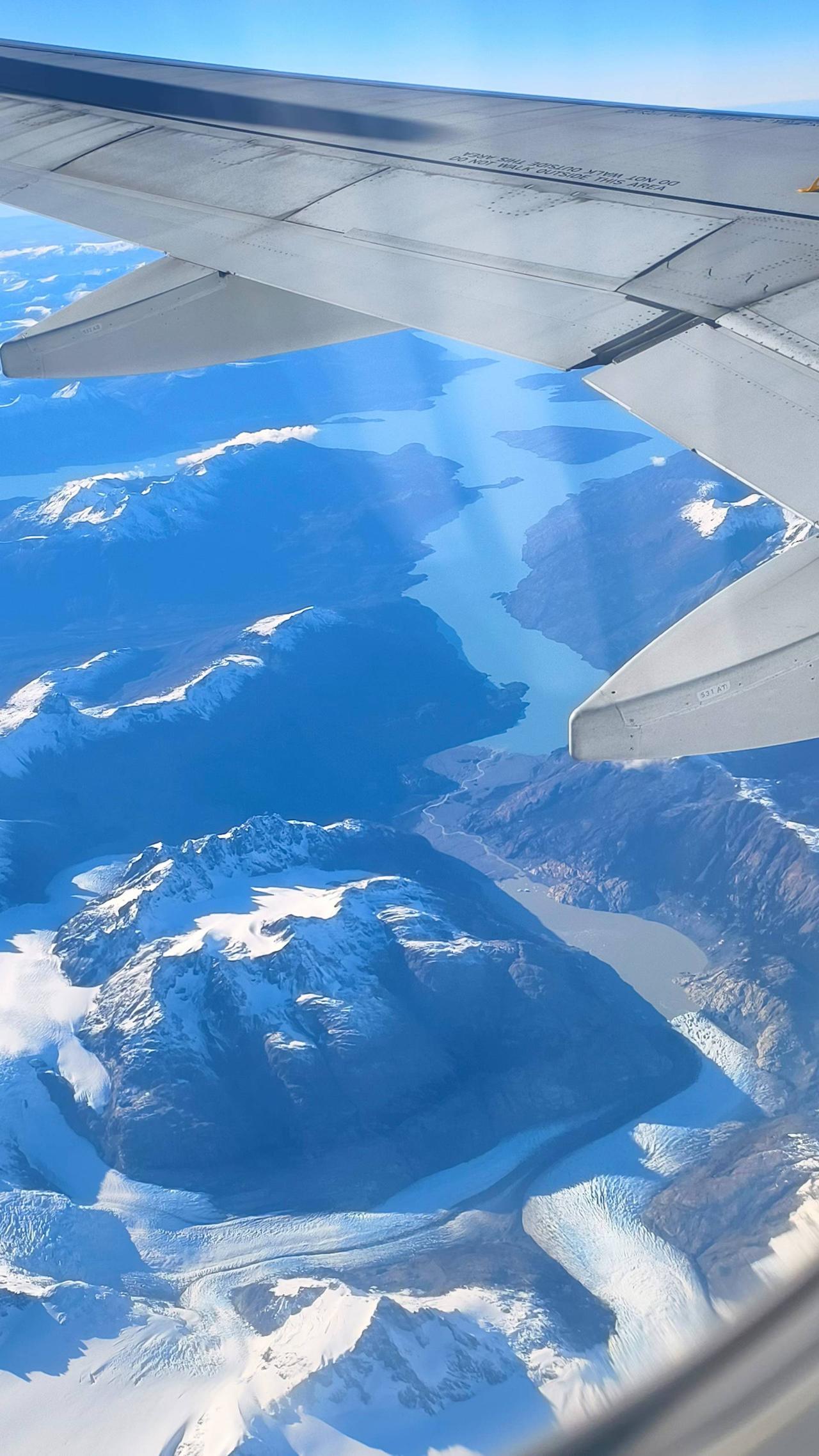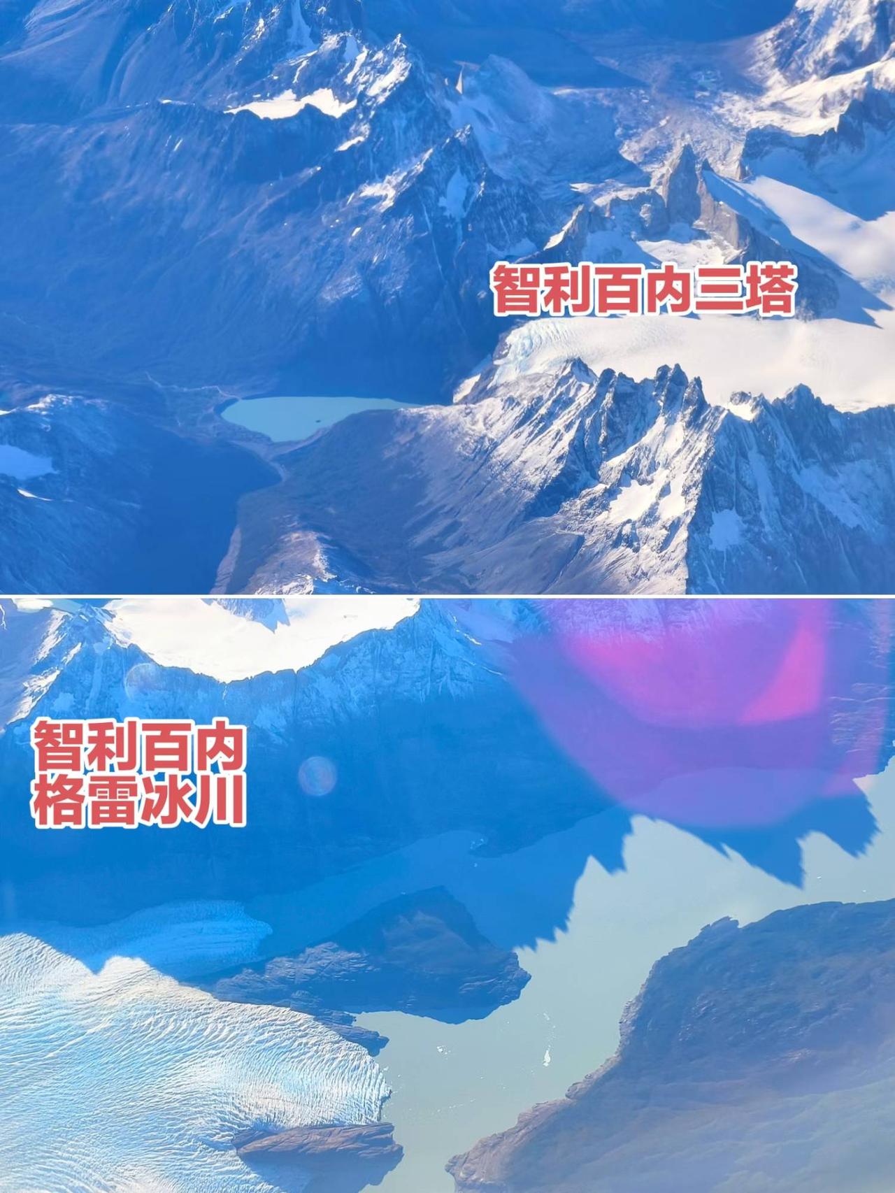 运气太好了!从蒙特港飞蓬塔阿雷纳斯,系统自动值机居然给分了左边靠窗,天气又极为给力,全程以上帝的视角俯瞰了巴塔哥尼亚的风光,著名的智利百内国家公园、格雷冰川、阿根廷的冰川国家公园、莫雷诺冰川、阿根廷湖、埃尔查尔腾的菲茨罗伊峰尽收眼底! ​ ​过两天去百内可能阴天,但不管是什么样,有了今天的好运视角都不遗憾了!