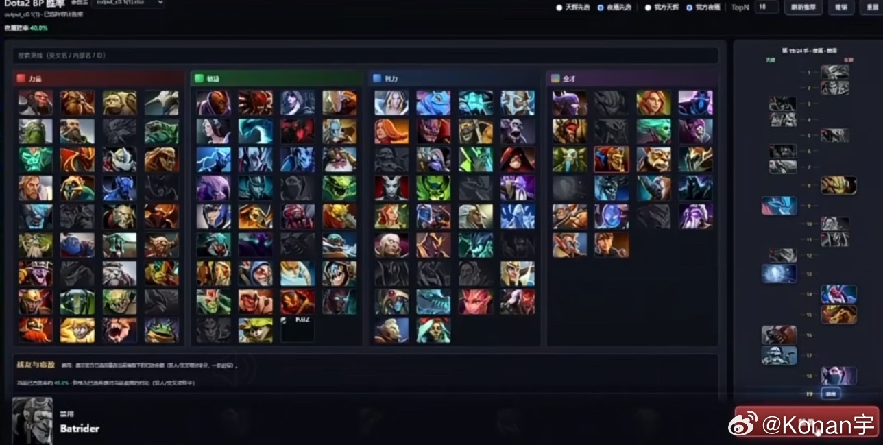 昨晚的勇气杯国土展示了杨哥俱乐部开发的AI bp胜率模拟,但是由于是刚开发阶段,目前输入的数据仅仅只是8500以下的路人数据和少量的比赛数据,所以还不够完善。dota2