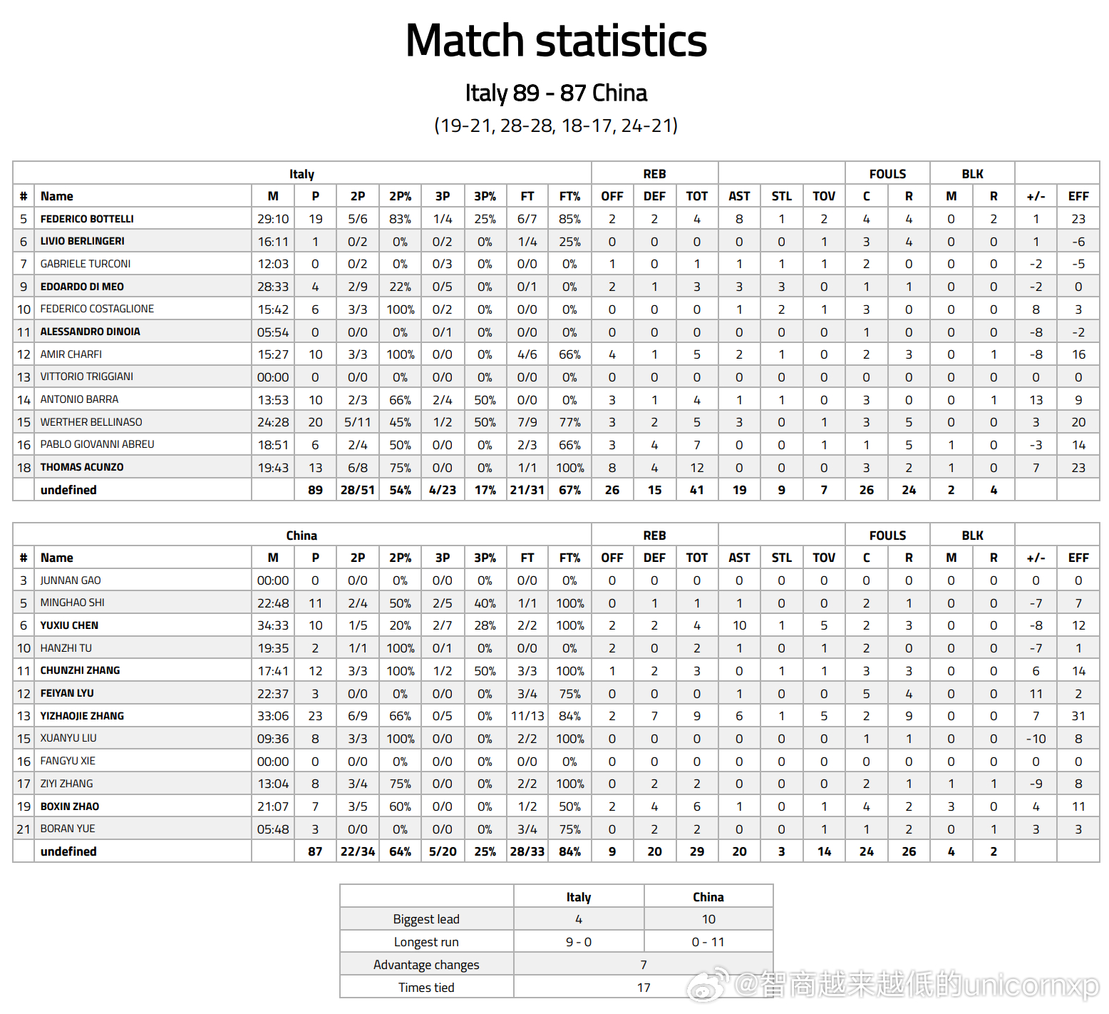 今天早上中国U1787-89意大利U17男篮具体数据张懿赵杰23分9篮板6助