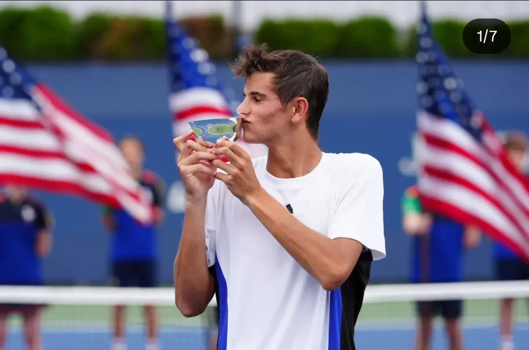 又一位05后横空出世——拉斐尔·霍达尔,姓名约等于偶像战神。不到一年火箭蹿升,跟偶像不同的是,第一他美国念大学,打大学生联赛所以出道晚,第二他喜欢硬地,发球劲爆。身体、技术和智商都有之后,还是那句话,找到适合自己的身体训练方法、节奏,懂得舍弃,避免受伤,未来大有可为。