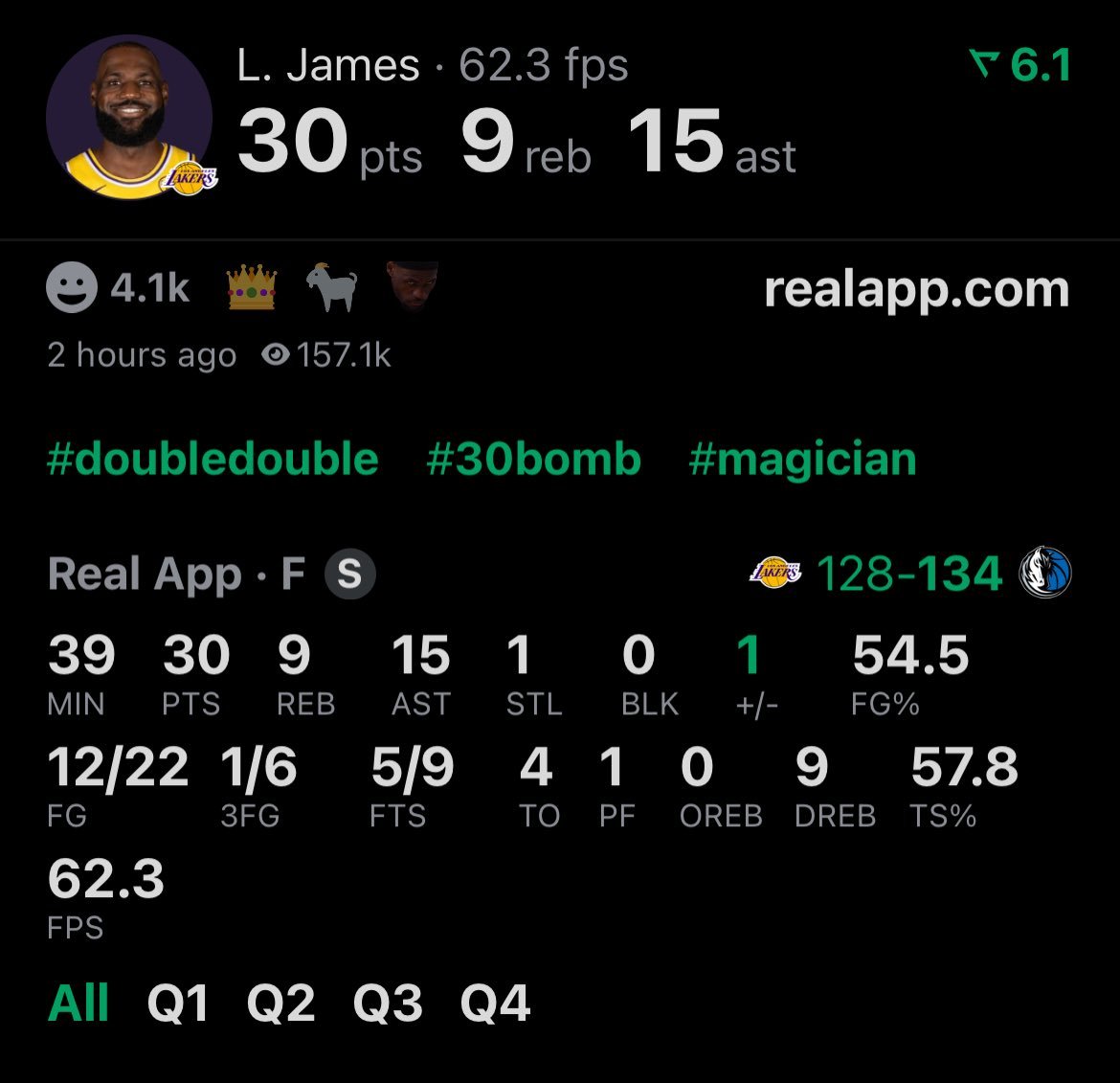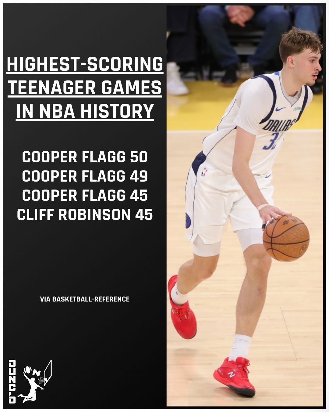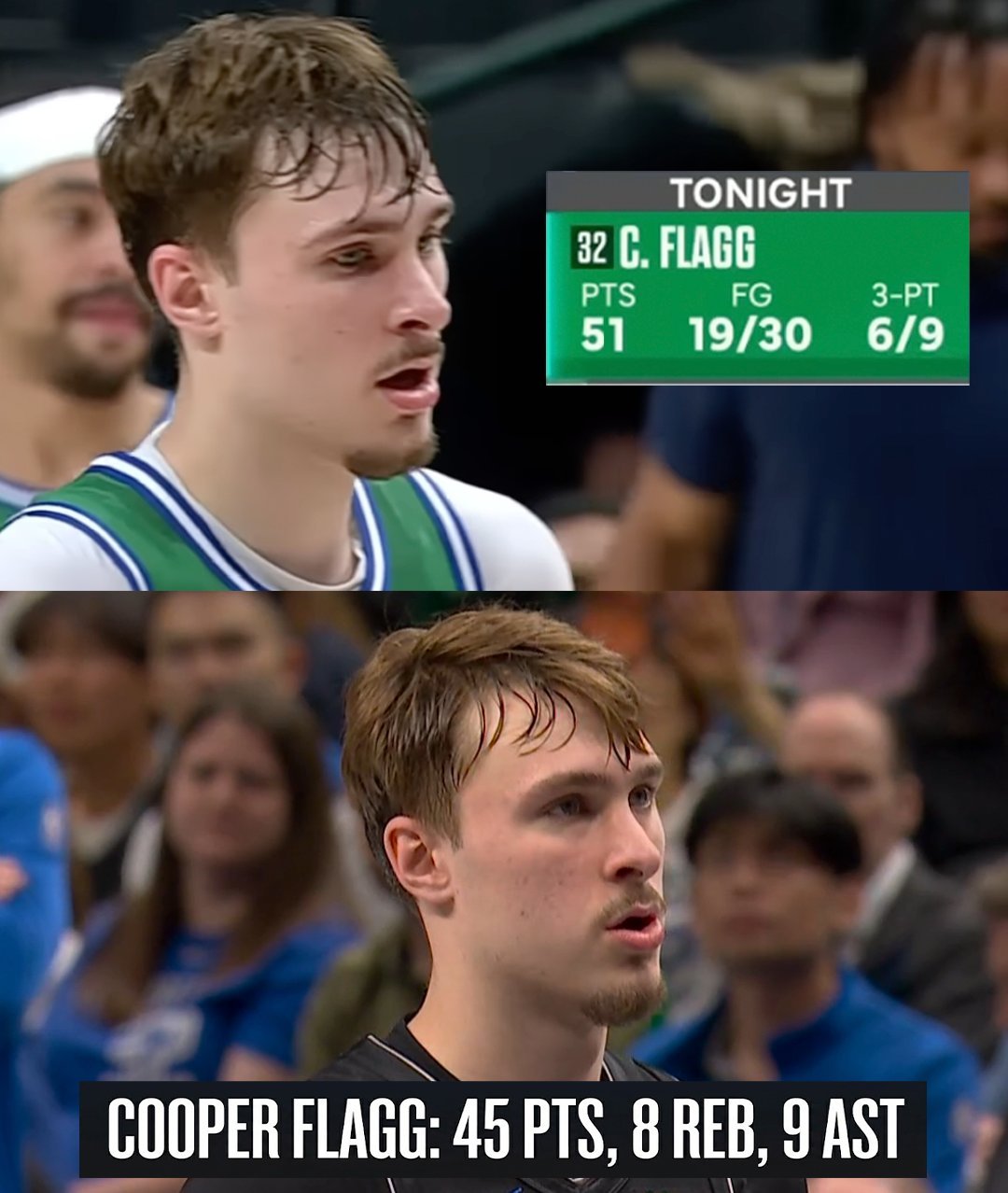 弗拉格爆砍45分8篮板9助攻,连续两战合计96分,成为张伯伦之后连续2场得分最高的新秀。这也是他生涯第4次40+,超越詹姆斯成为NBA历史不满20岁砍40+最多的球员。湖人vs独行侠NBA