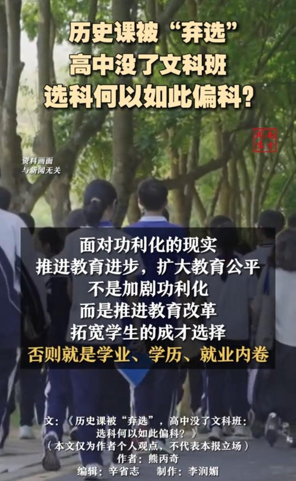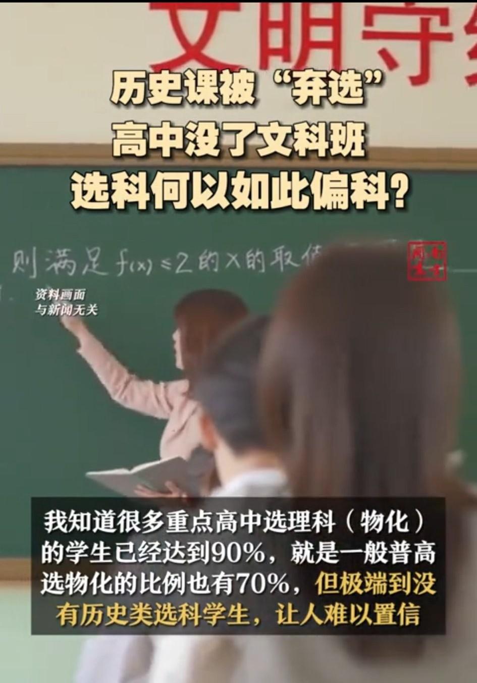 《南方周末》那篇“被弃选的历史课”看得人心里挺不是滋味的。河南某县中,快2000个学生里选历史的不到170人,20位历史老师一半没课教,有的都准备转行了。这事不是个例,新高考省份里物理和历史考生的比例普遍七三开,有的地方甚至八二开。 为啥历史这么不受待见?说白了就三点:高考70%的专业都要物理,选历史等于主动放弃大部分专业;县中孩子从老师到家长都觉得文科不好找工作;再就是学校开课也倾向物理组合,历史组合没几个能选。但你说文科真被弱化了吗?也不完全是。现在大厂抢着要文科生,什么AI叙事设计师、伦理研究员,月薪两三万起,因为批判性思维和讲故事的能力机器替代不了。 问题出在制度上——把选科和就业死死绑在一起,逼着十几岁的孩子做功利选择。高考改革本该拓宽路子,结果反而把人往窄里推。历史可以选考,但不能不学。一个连自己国家历史都搞不清楚的年轻人,将来能走多远?南方周末 重文轻理 文理选科