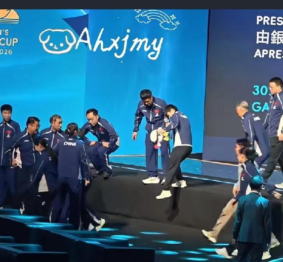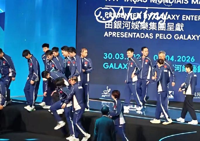 真是谁家的孩子谁疼, 所有的人都活蹦乱跳地下台, 只有他俩累得需要人扶下来。 澳门世界杯, 国乒大合照之后离场。 王楚钦下台的时候, 王皓和体能教练把他搀了下来, 一看他的腿都打不了弯, 下来的时候感觉他很疼的样子。 秦导要笑死了, 喊孙颖莎从那边阶梯下, 结果孙颖莎直接拉着邱指跳下来。 最后秦导也跟着跳下来了, 行动证明秦导特别喜欢莎莎。 任浩离曼昱远, 但也一直看着曼昱。 大家都太有爱了。 恭喜莎莎和王楚钦, 为国争光, 也感谢曼昱的付出。 一切都太不容易了! 真是百感交集呀! (图片源自于水印)