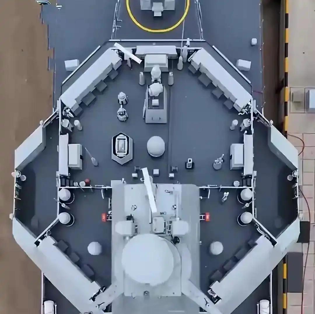 最新批次055一镜到底!究竟有什么不同?主炮没梯子烟囱加了套? 最新批次055居然偷偷“整容”了,而且还藏了大招?不但主炮没梯子、烟囱还加了“外套”,颜值也更加威武干练。央视一镜到底曝光细节,并官宣055入列数量达两位数,那么战力究竟得到怎样的提升? 主炮焕新 新批次055最直观的变化,就是HPJ45型130毫米主炮取消了外置攀爬梯,从而彻底告别“带梯出门”的旧模样,实现了颜值和隐身性双在线。要知道这可不是偷懒省材料,根据中国船舶集团的披露,去掉梯子的设计,不仅是因为主炮自动化水平大幅提升,而且故障率骤降,再也不用舰员频繁爬梯维护,不但更利于隐身,同时还减轻了船员的工作强度。更细节的是,炮口测速雷达从首批的矩形浅灰色,改成了更隐身的圆形黑色,又进一步降低了雷达反射。其实早在2023年12月第二批次首舰东莞舰下水时,这一改进就已经亮相,现在搭配该炮每分钟40发的射速,火力更是堪比陆军一个炮兵营,即便是单门1到2亿元的造价,也妥妥的“物超所值”,并在世界同口径舰炮中稳居第一梯队。 烟囱升级 如果说主炮去梯是“小优化”,那烟囱加装一体化风帽就是“硬核操作”。根据央视画面的清晰显示,新批次055的方形烟囱上多了个“后倾式防护套”,这样既能避免排烟熏黑雷达天线,又能大幅降低红外辐射,也就相当于给烟囱“穿了隐身衣”。搭配舰桥舷窗从7扇减为5扇的改动,根据中国船舶集团的披露,雷达反射截面积也将直接降低30%,甚至逼近0.1平方米级别,隐身能力更是超越美军顶尖驱逐舰。还有烟囱两侧的胶囊状救生筏被挡板遮挡,同样是隐身设计的巧思,说明新的改动细节拉满,绝非“表面功夫”。2026年3月国防部例行记者会也间接证实,这些改进能大幅提升舰艇生存能力,对捍卫海疆意义重大。 雷达加码 还有新批次055的“眼睛”也迎来史诗级升级,换装的改进型346C有源相控阵雷达,是采用氮化镓技术,其探测距离不但从346B型的450公里飙升至600公里,而且还可同时跟踪多达400个高威胁目标,据说对F35这类隐身目标的截获率,也能从63%提升至91%。而且从央视俯瞰的画面中就能看到,舰桥六边形轮廓对应四面大盾,综合桅杆还集成了X、C、L多波段雷达,不但让这套雷达系统的散热效率提升4倍,甚至可在70℃高温下连续工作72小时,而且还能实现全域态势感知。除此之外综合射频系统还能释放,相当于50部5G基站总功率的射频压制力,对美军电子战系统的干扰成功率达90%以上,可见电子战能力直接拉满。 部署提速 不过从2020年1月首舰南昌舰入列北海舰队,首批8艘055却仅覆盖北海、南海两大舰队,东海舰队长期“缺货”。如今央视新闻直接官宣109东莞舰、110安庆舰正式服役东海舰队,三大舰队终于要实现均衡部署,并彻底补齐布局短板。而且第二批次6艘055其实已经全线下水,其中111舰、112舰也正在海试,预计最迟2027年就可交付,2028年前6艘055更将全部交付,届时055不光总规模将达14艘,而且中国海军也将建成全球最大的万吨驱逐舰集群。当然按照规划,中国还计划建造更新更强大的驱逐舰,后续批次更加搭载电磁炮和激光武器,届时每艘055和更新的大驱都将成为“移动禁航区”,并夯实中国海军走向深蓝的底气。