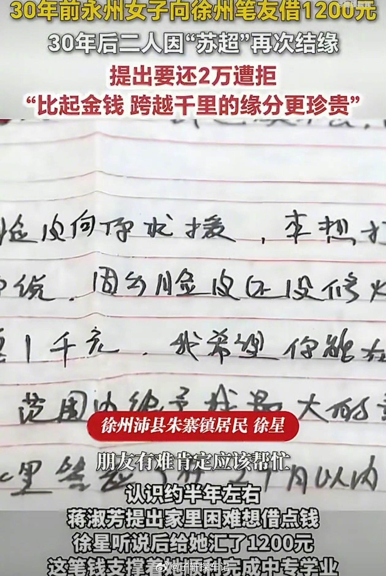 借笔友1200元30年后还2万被拒这年头还能见到这么纯粹的笔友情,没套路没算计,