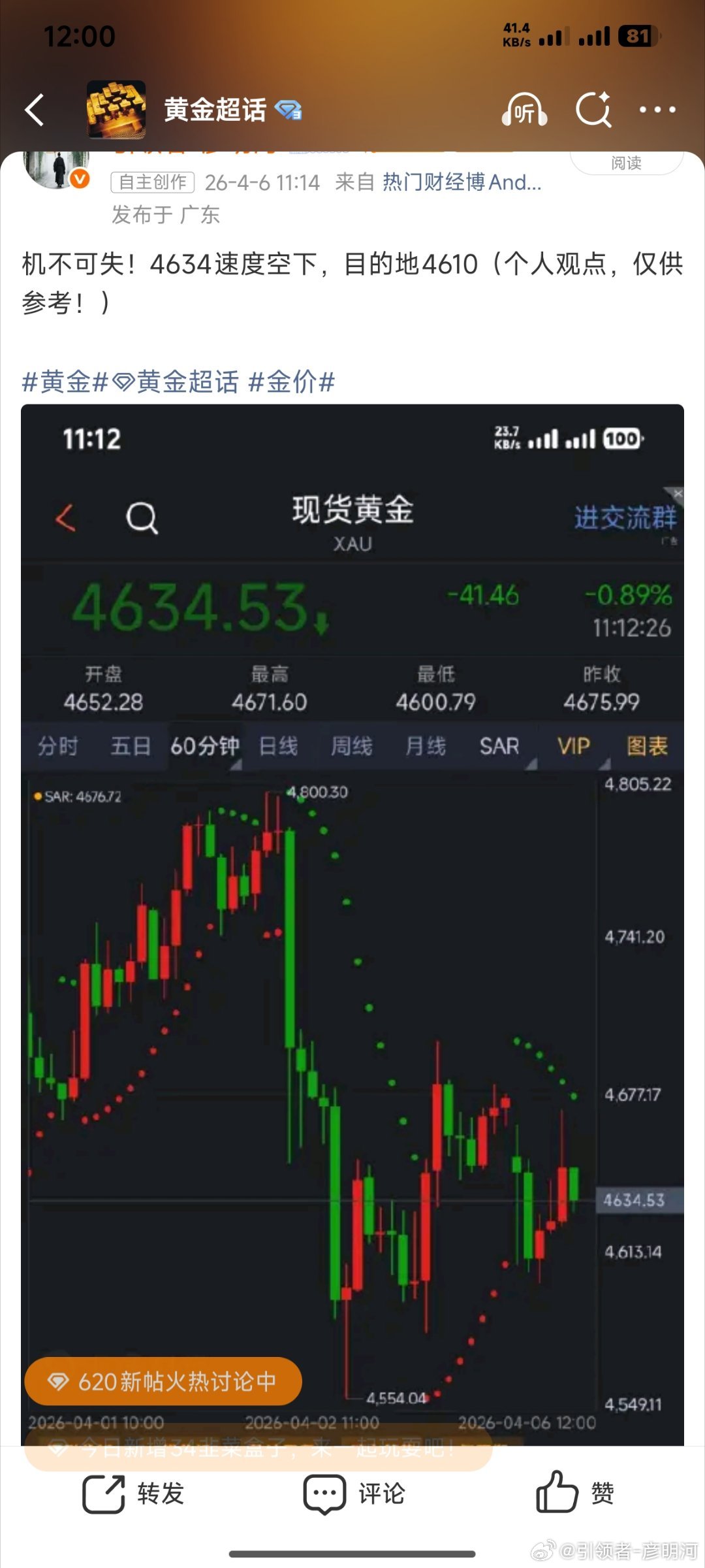 4625便是上午的低点了吗?在我看来绝不是今日的低点!黄金给出的4634下抵达4
