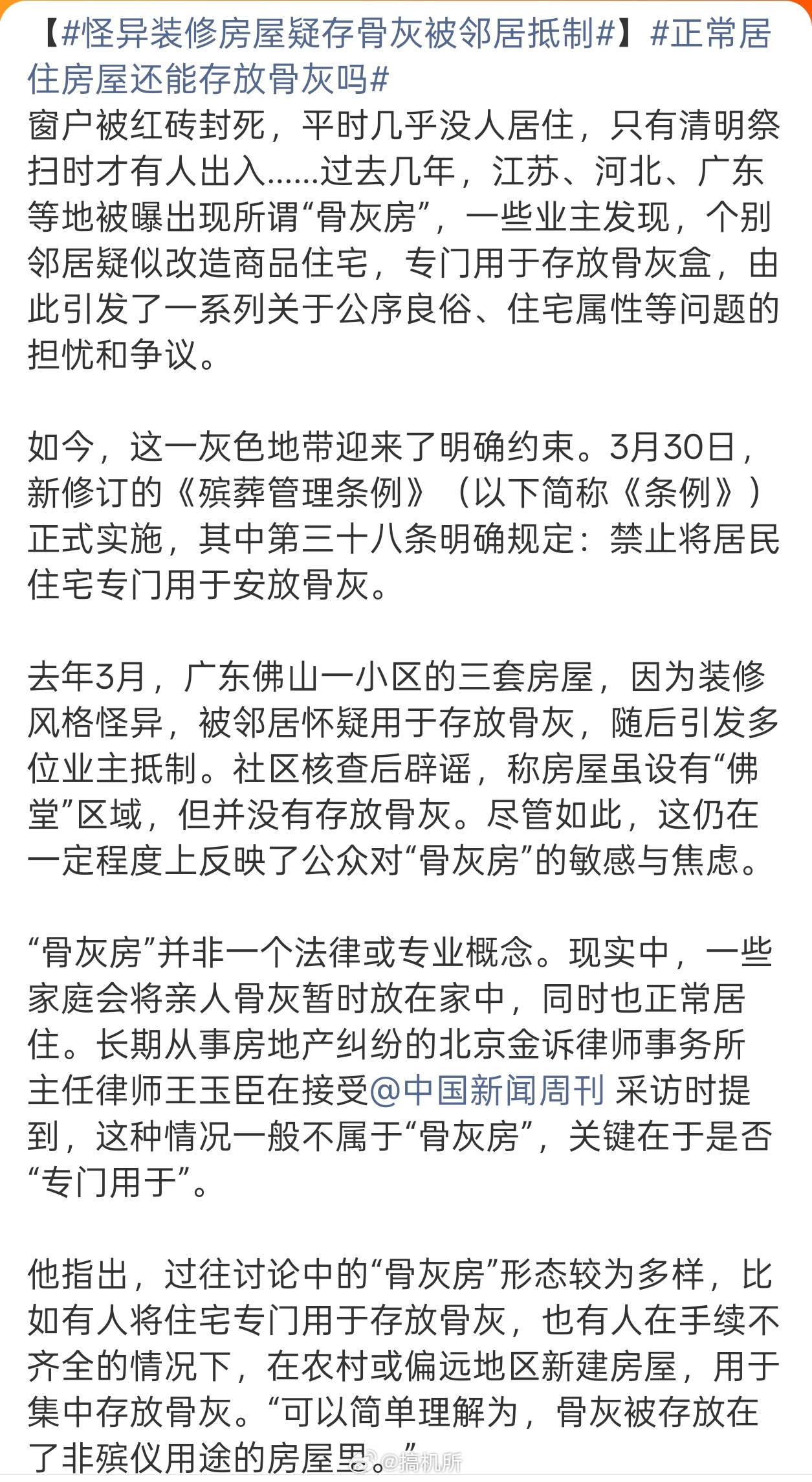 怪异装修房屋疑存骨灰被邻居抵制现在墓地比房子还贵,而且产权不是永久的,需要定期续