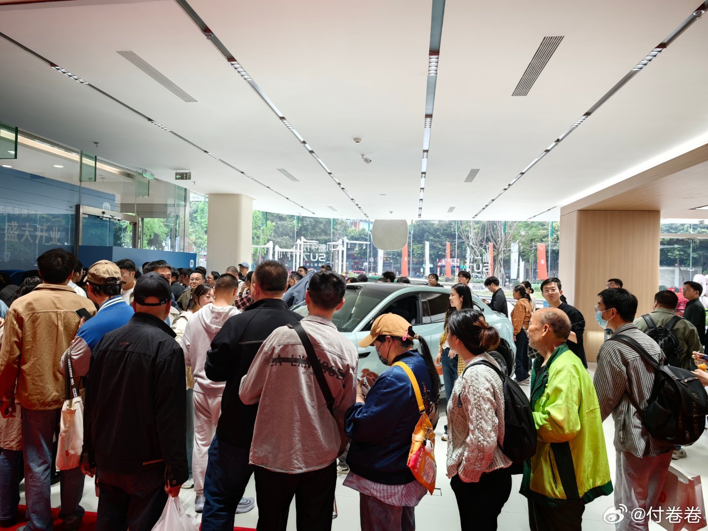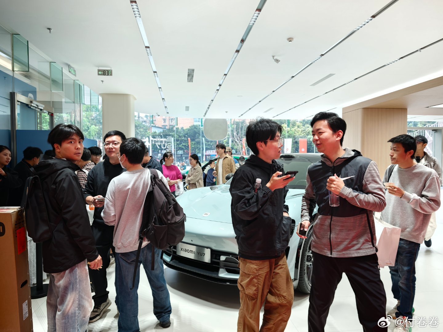 小米之家成都金牛凯德汽车体验店,新店开业,人好多呀!人山人海的!这个店也特别的漂亮,但是人太多了,我都没挤进去好好拍两张。关键是这个小米之家的路线设计,会让你逛起来特别的舒服,真的像回家了一样 小米 小米汽车 付卷卷 爱粟 成都·小米之家四川成都金牛区凯德广场店