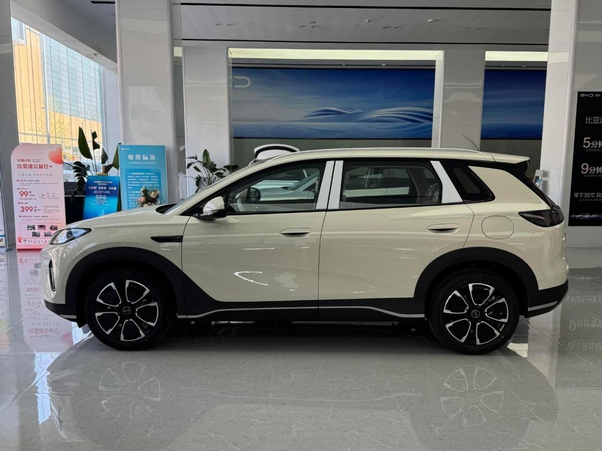 前面样子变了,像电动车了,车头很压,往下冲着,没有梯形的,装饰板了,灯是U字型,贯穿起来的,大灯也上扬,下面是黑的,两层格栅,还有镀铬唇,看着很凶,运动感很强。侧面线条流畅,保持饱满感,车窗是黑的,D柱也黑了,感觉车顶,浮起来了,门把手是藏的,轮子是双色,好看的花瓣,侧面看过去,档次感很高。后面标志也新了,尾灯是贯穿的,更有质感了,BYD的字,第一次放在,灯里面了,后保险杠,没有花了,用黑饰板,银色护板,不规则尾翼,看着很干净,力量感十足。车身也大了,长4620,宽1860,高1630,轴距2770,尺寸升级了,车里空间,肯定大了,外面看着,也更有气势。颜色也多了,海贝粉好看,珊瑚橙也行,年轻人买车,喜欢特别的,能满足需求。