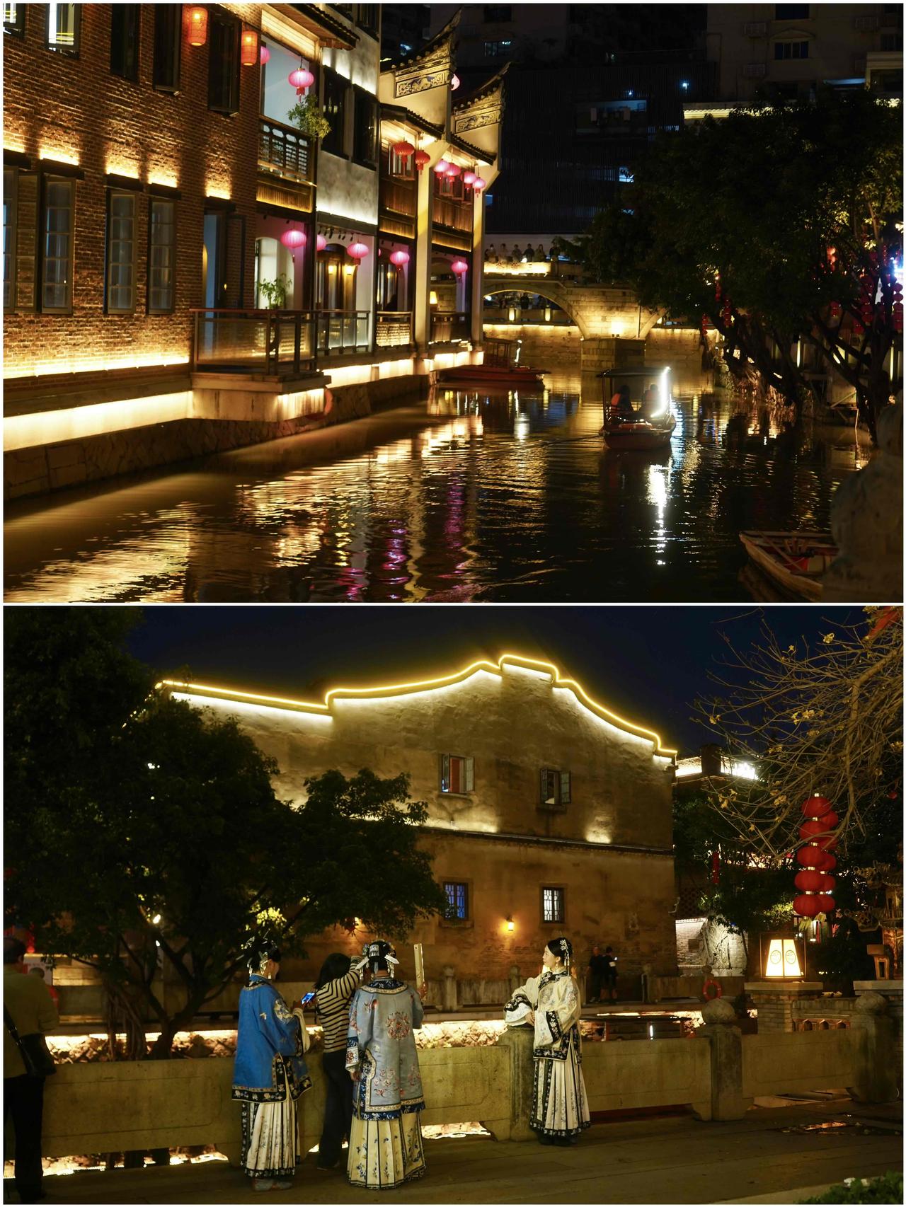 漫步福州水岸边的闽韵-上下杭,因闽江沙痕“航船停泊处”得名。这里是福州古城历史文脉的“三山两塔一条街,被誉为“福州传统商业博物馆”。 明清时是福建“华尔街”,200多家商号聚此,桐油、茶香漫过骑楼。如今老墙留着掌柜拨算盘的肌理,青苔爬过百年门槛,地三捷河在流淌,青石板路尽头,灰瓦老房泛着柔光,清末明初“中西合璧”的老建筑在这里演绎着中华文化的魅力。 🚶‍♀️游玩路线推荐: 上下杭牌坊 → 三通桥 → 三捷河沿岸 → 陈文龙尚书庙 → 舒叙茶馆 → 金银里步行街 → 闽榕茉莉花茶文化馆 → 罗氏绸缎庄(福州市非物质文化遗产展示馆)。 🌉 三通桥 上下杭的标志性入口。这座古石桥横跨三捷河,桥栏石板刻有“清嘉庆丙寅年(1806年)仲秋吉旦造”字样,保存完好。白天是绝佳的拍照背景,夜晚灯光亮起,桥身倒影在水面摇曳尤为迷人,旁边的木质牌坊很有古韵。 📕鹿森书店:复古装修风格的书店内满是书籍与艺术的气息,还可以点一杯咖啡享受悠闲时光。 🏛️ 永德会馆 始建于清雍正年间的中西合璧风格建筑,曾是闽南永春、德化两县商帮的联谊场所,南洋红砖和中式飞檐值得细品,内部非遗油纸伞和德化白瓷艺术品也很是精美。 🎭 罗氏绸缎庄旧址 福州市非物质文化遗产展示馆,集中展示了福州本地的寿山石雕、脱胎漆器、软木画以及茉莉花等,众多福州非遗瑰宝。感可以在互动区体验制作茉莉花茶,受老手艺的魅力,周一闭馆别跑空哦。 🏡 采峰别墅 省级文物保护单位,为马来西亚侨商领袖杨鸿斌故居。别墅融合西式营造与中式传统建筑,气派非凡,尽显闽商的传奇故事与生活风貌。庭院里绿植林里,环境清幽雅致,现为开放的方所书店以及咖啡馆。很喜欢百年侨厝里的红砖花窗和悠悠茶香,正好累了在这边喝茶歇脚很舒服。 ⛩️ 张真君祖殿 始建于明代隆庆年间(1571年),供奉福建财神张真君,是许多商人祈求财运的重要场所,现已升格为省级文保单位。 🏯古田会馆:百年闽派建筑“天花板”,重檐歇山顶藏三座贴金藻井,堪称馆庙合一,正殿祀妈祖,戏台曾唱闽剧,可感受百年匠心与闽商精神。 这里有很多有创意的店铺,餐厅,文创店,都很有特色。古色古香的桥梁、流水与青砖黛瓦,很适合拍古风或者传统三把簪。傍晚看两岸斑驳的清末民初古建倒映在水波中,勾勒出一幅榕城水乡画卷。偶有游船划过水面,桥身与水面倒影相映成趣,晚上亮灯后更是美轮美奂,蓝调时刻最出片。 📍上下杭历史文化街区 🎫免费 🚇福州地铁1号线至达道站C出口步行即是